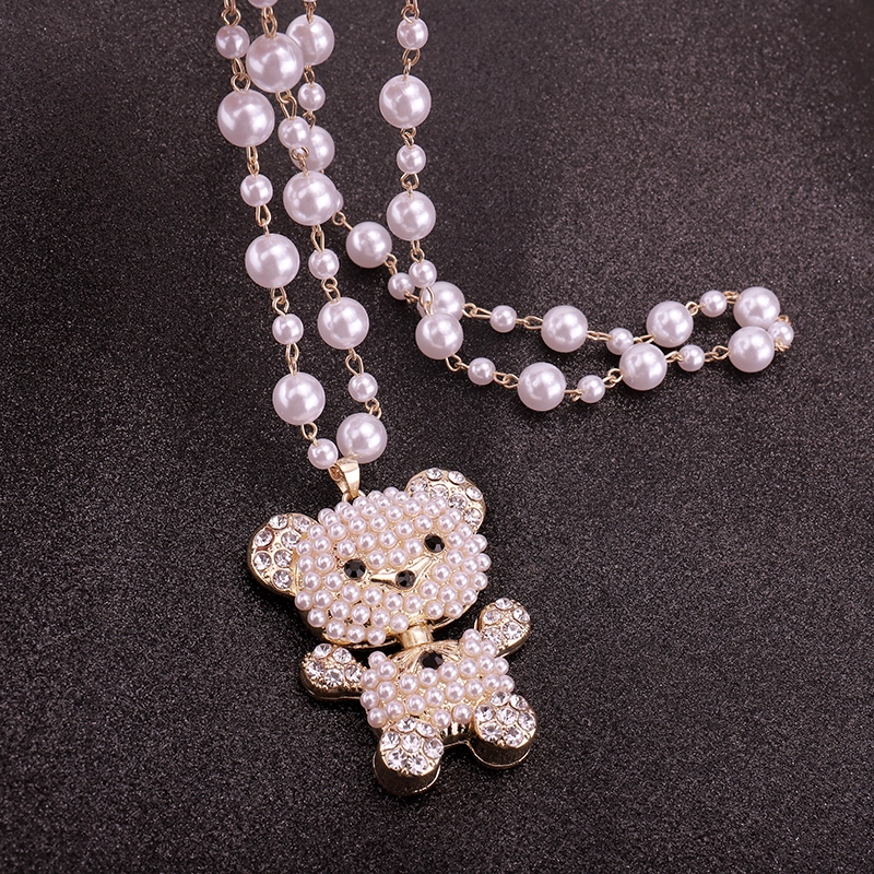 | nameOriginal | Hip-hop sweet style necklace women's long bear pearl hanging chain autumn and winter versatile decorative pendant little tiger sweater chain |