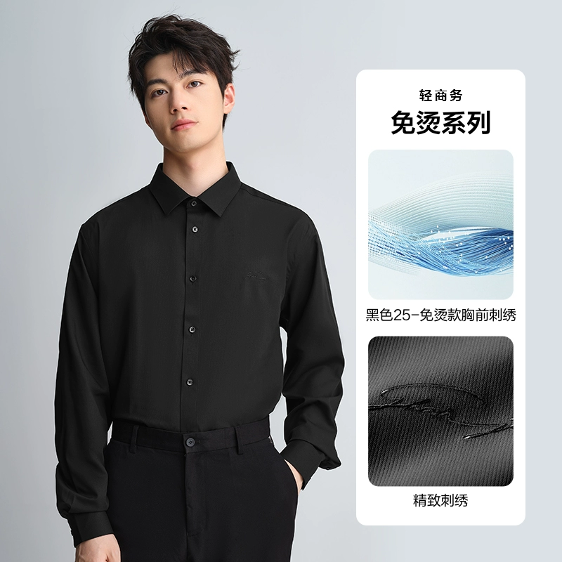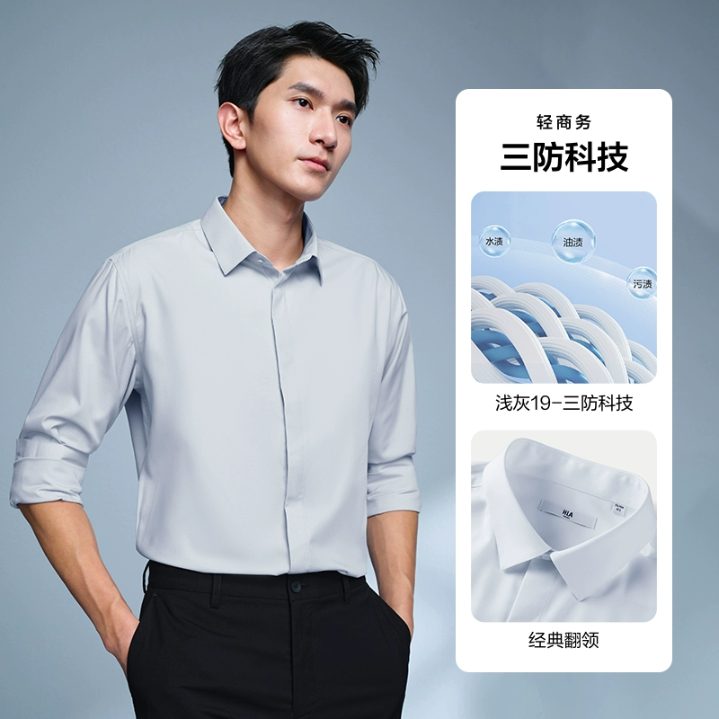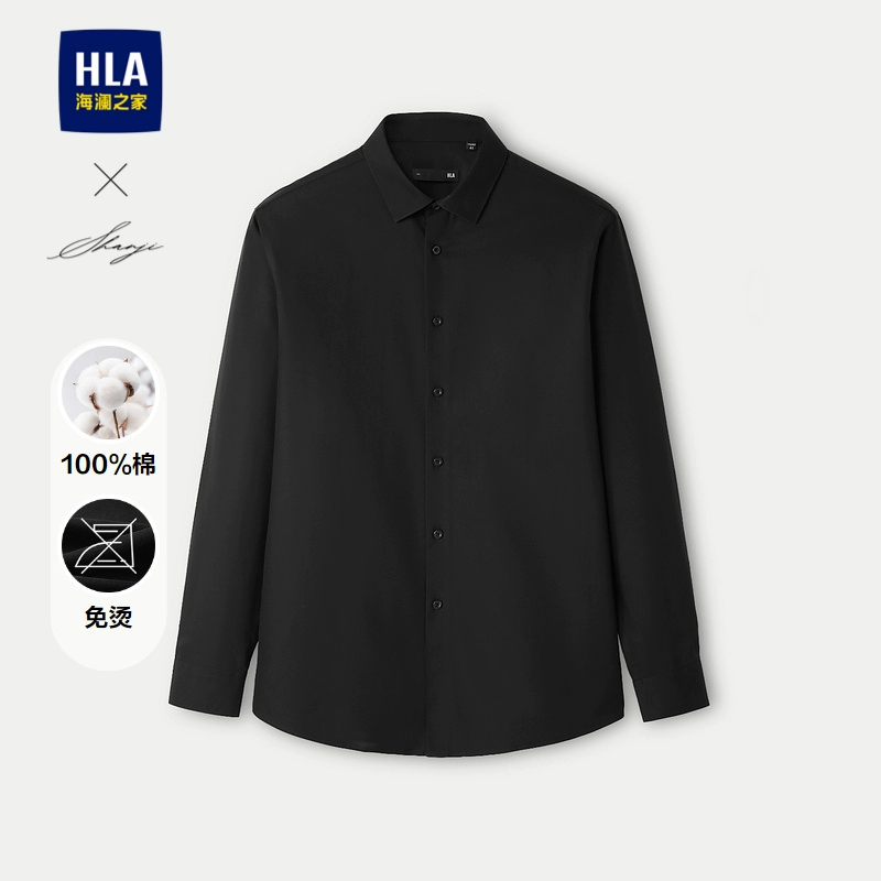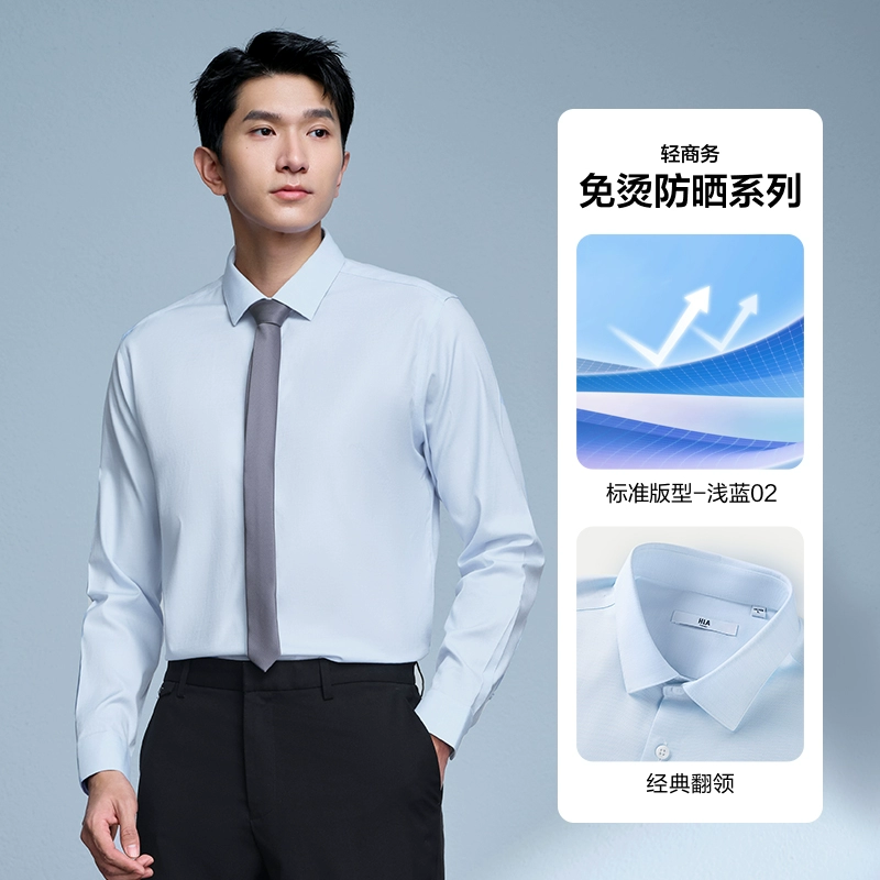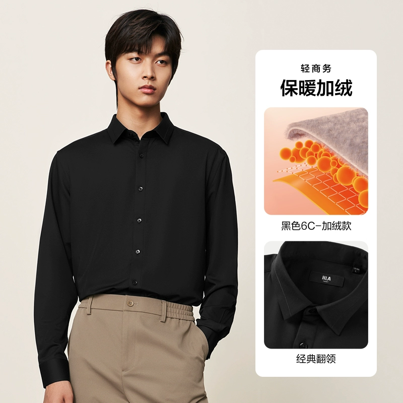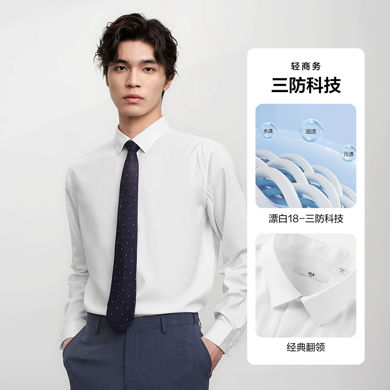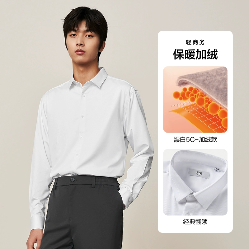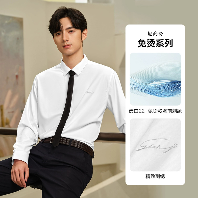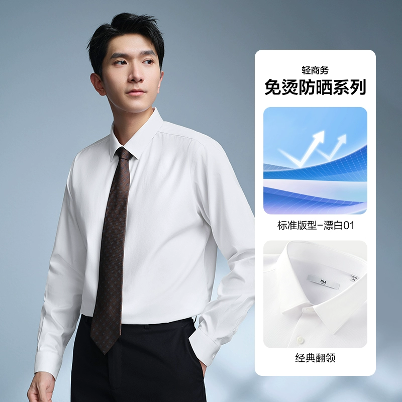 HLA non-iron lapel embroidery 24 spring white shirt formal wear