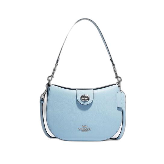 This product features a sleek design made of high-quality pebble leather. It includes a convenient inside zip pocket and a turnlock closure with a soft fabric lining. The handle is detachable and has a drop of 9 1/2 inches, while the strap is also detachable and can be worn over the shoulder or across the body with a drop of 22 inches. The dimensions of the product are 10 inches in length, 7 3/4 inches in height, and 3 1/4 inches in width. The style number for this product is CH196.