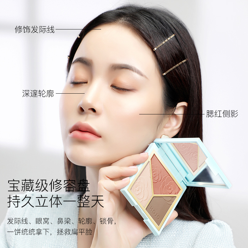 HOJO three-color highlight repair plate glitter matte nose shadow blush makeup plate factory direct supply wholesale