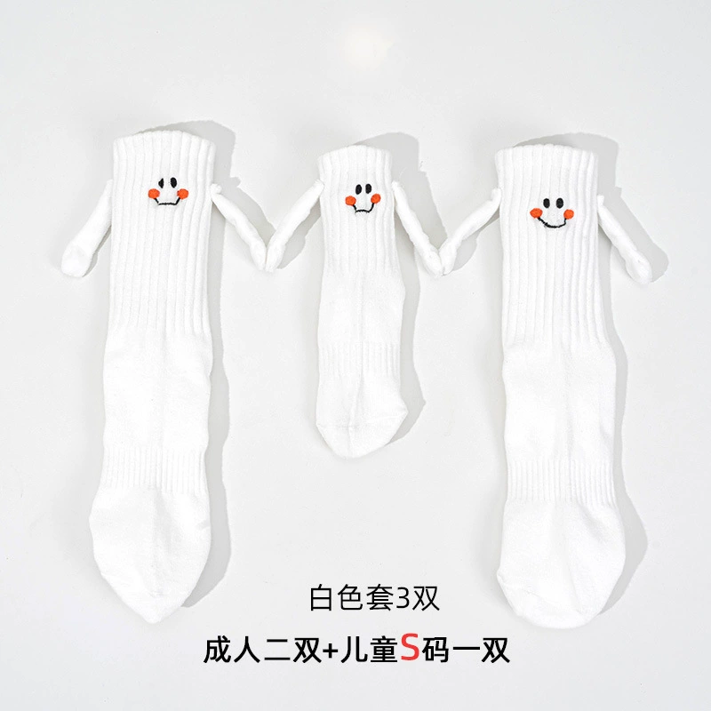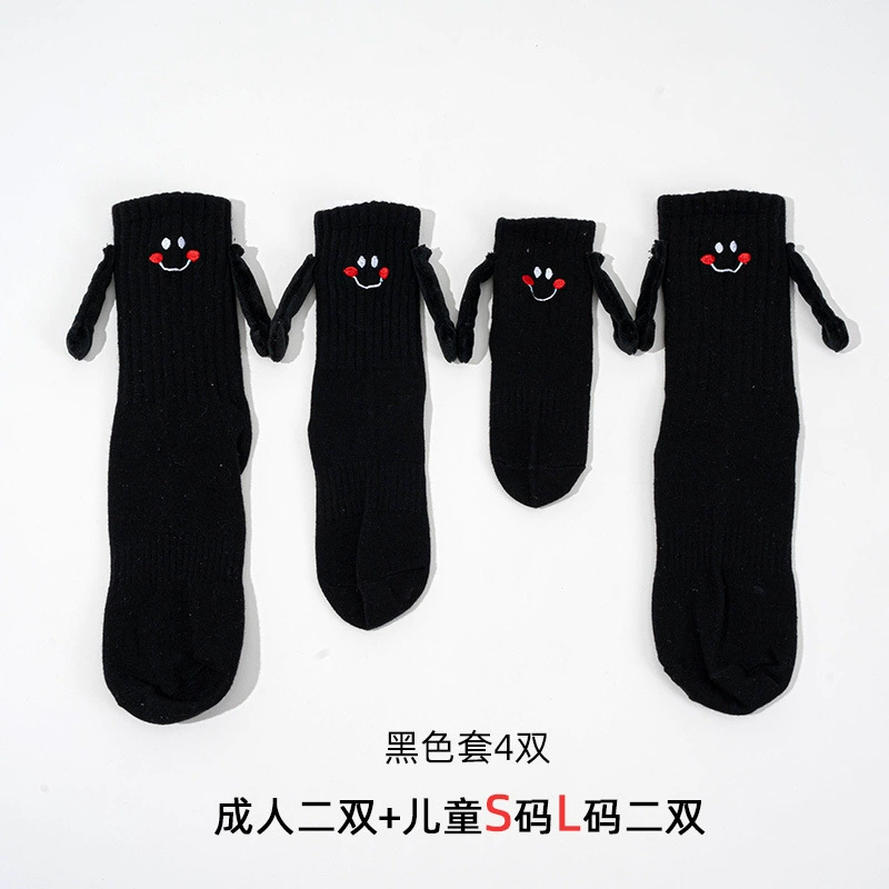 | nameOriginal | Holding hands socks, magnetically absorbing mid-calf socks for male and female babies, cute and funny smiling faces, trendy cartoon Internet celebrity style hand holding parent-child socks |