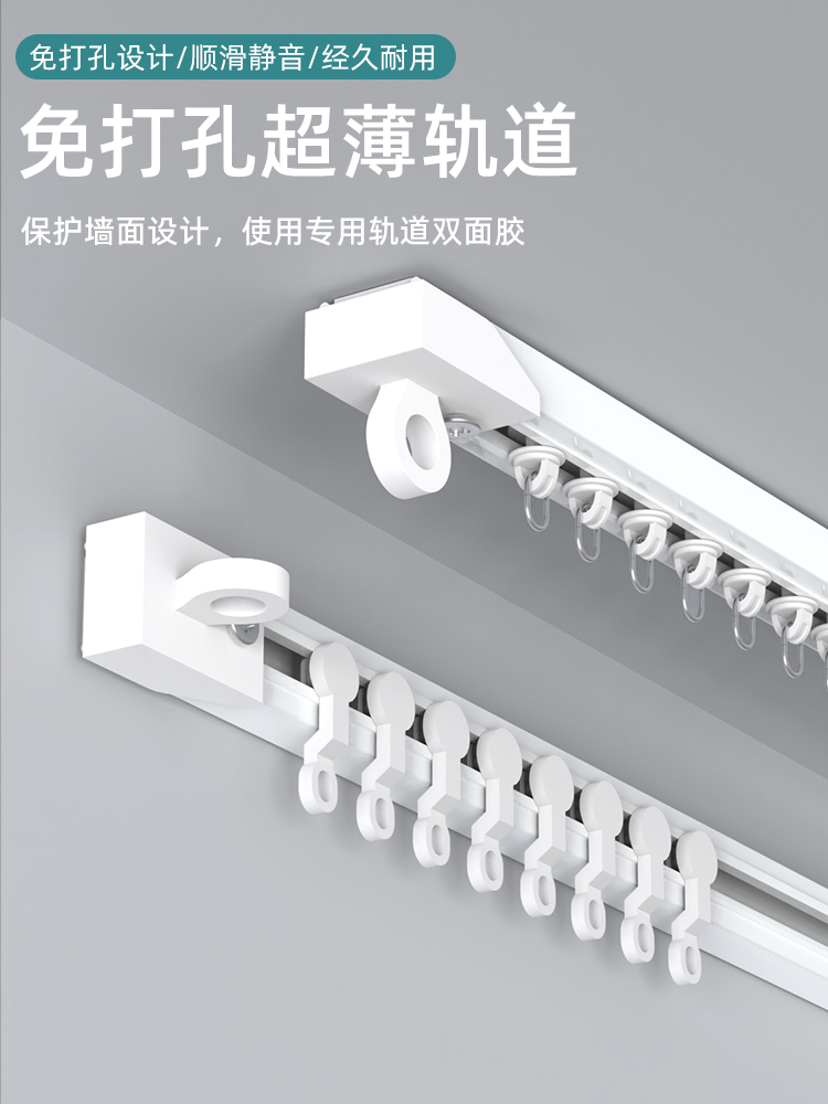 Hole-free curtain track slide hook rail curtain rod bed curtain adhesive nail-free slide pulley monorail