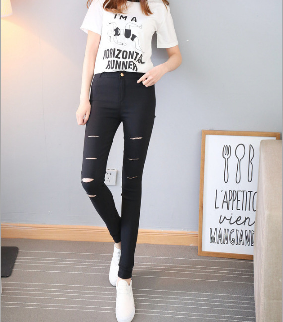 Hole new summer leggings women's pocket pencil leggings plus size pants Puning factory wholesale bottoming