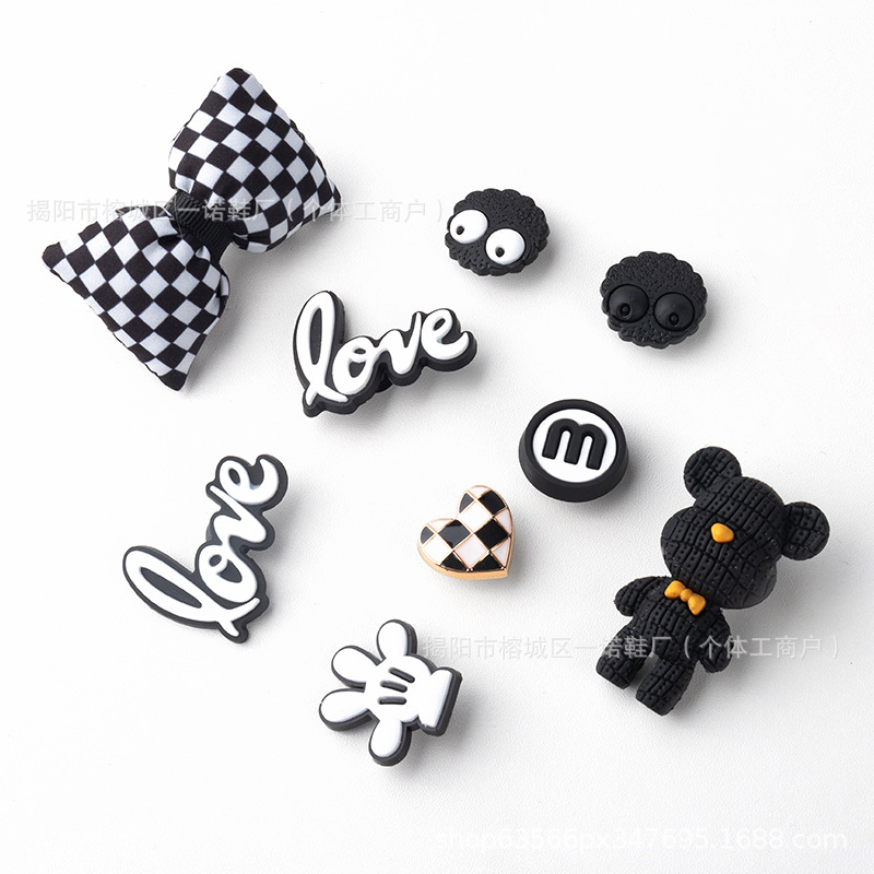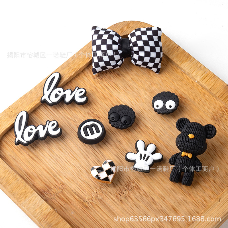 | nameOriginal | Hole Shoes DIY Shoe Buckle Black and White Pair Bow Accessories Removable Bear Shoe Flower Accessories Decorative Shoe Buckle Wholesale |