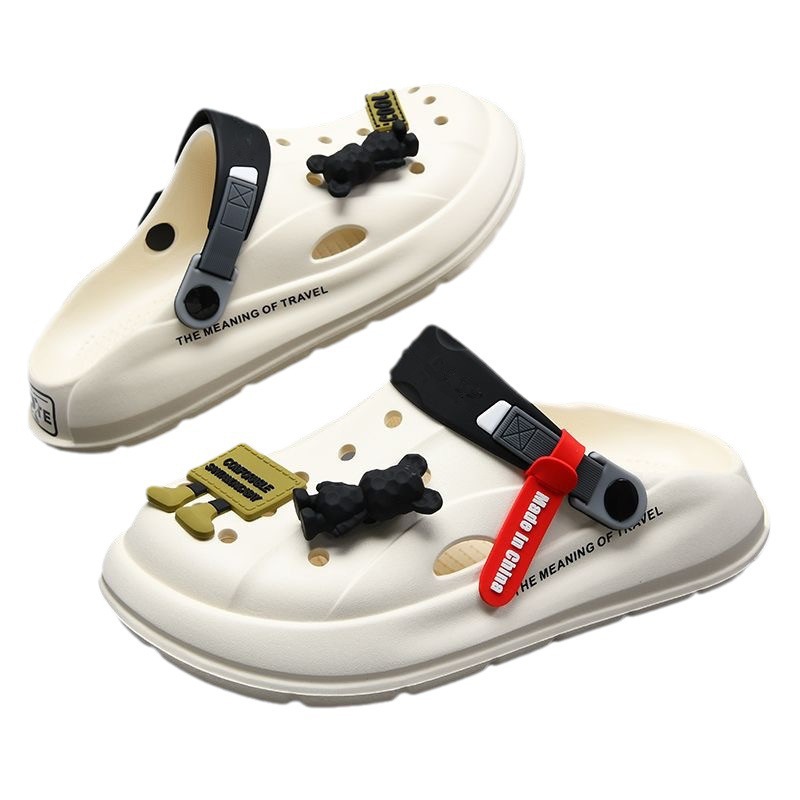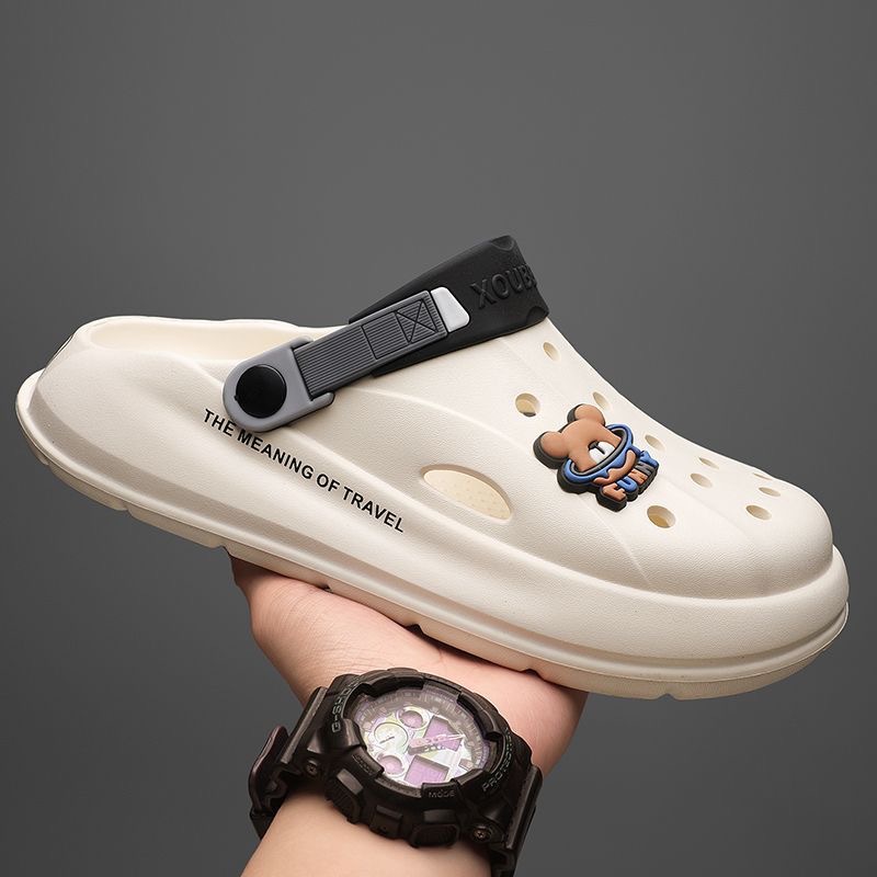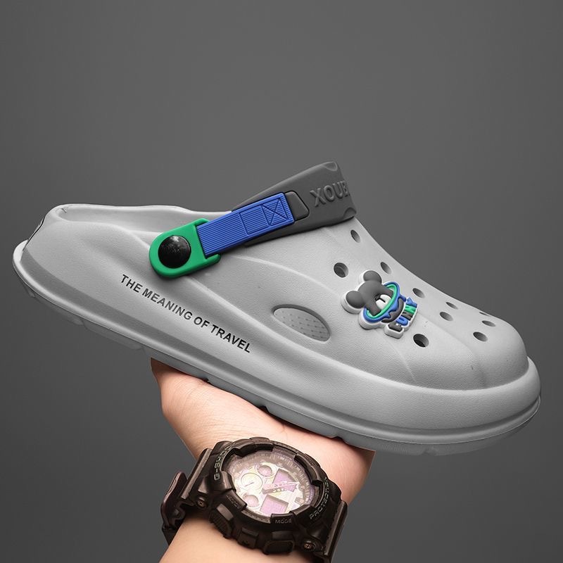 Hole Shoes Men's Summer Outwear Cartoon Fashionable Household Couple's Non-slip Hole Sandals Toe-covered Slippers for Female Students