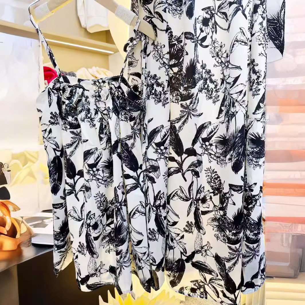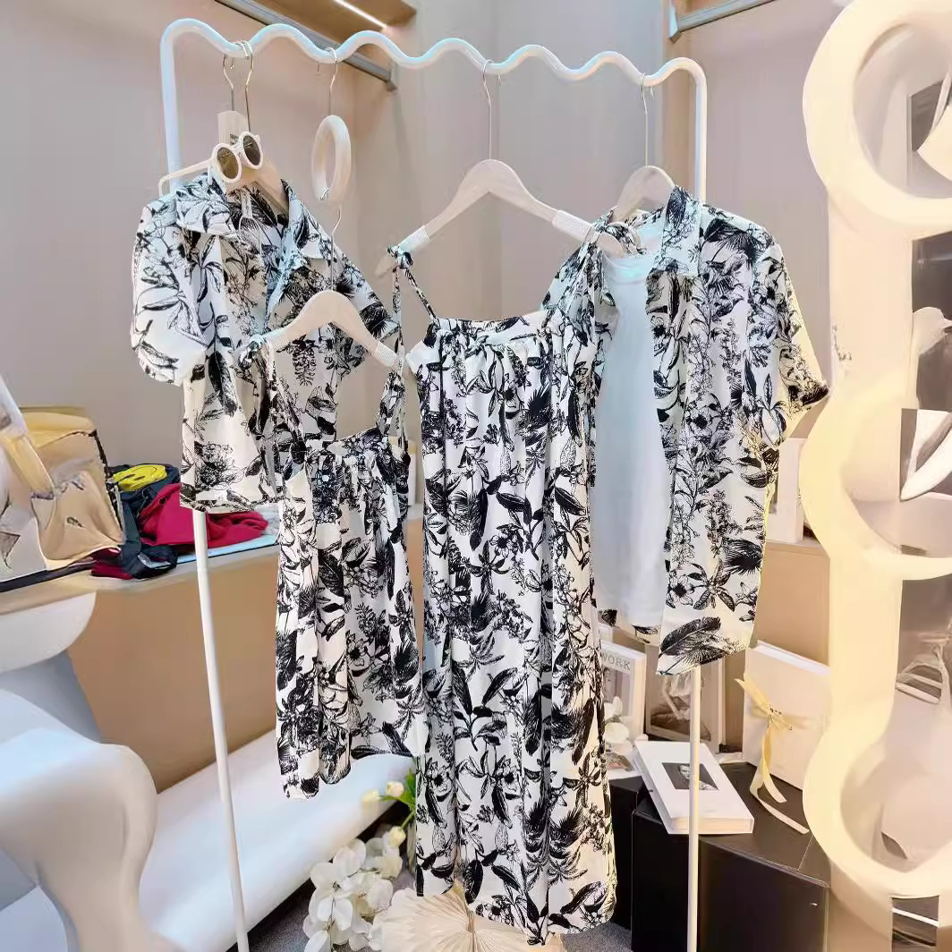 | nameOriginal | <ink leaf> holiday beach parent-child outfit for a family of three hawaiian shirts loose retro hong kong style chiffon mother-child lining |