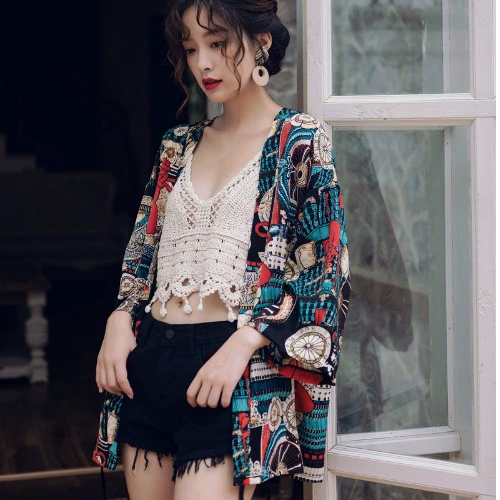 Holiday Japanese retro print seaside beach cardigan