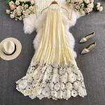 | nameOriginal | Holiday style long skirt for women, French high-end halterneck skirt, summer lace hollow dress, gentle style A-line skirt |