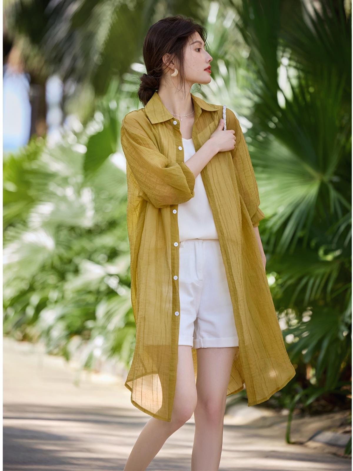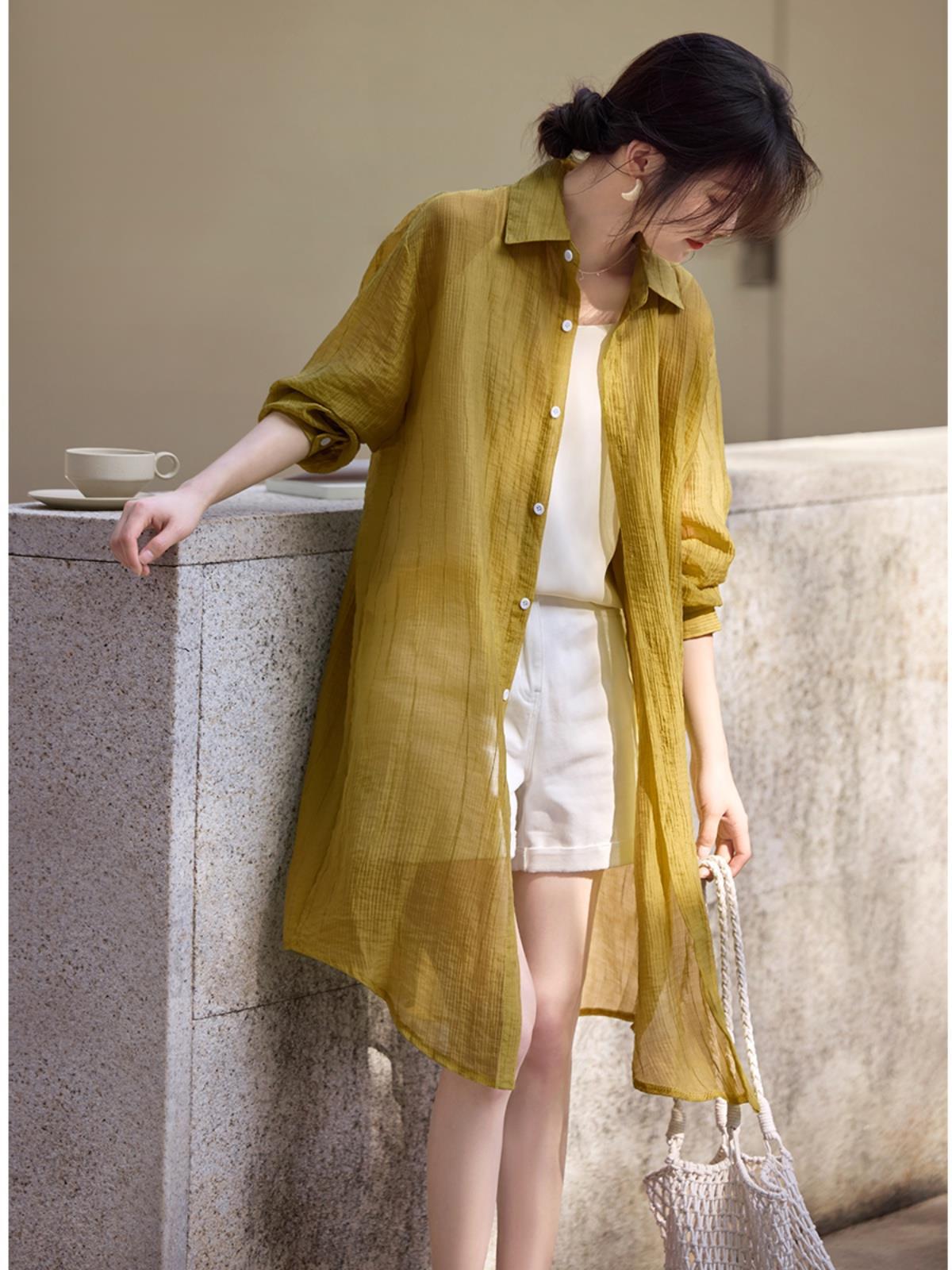 Holiday Style Long Sunscreen Shade Shirt Jacket Women’s 2024 Summer New Fashion Age-reducing Commuter All-match Top