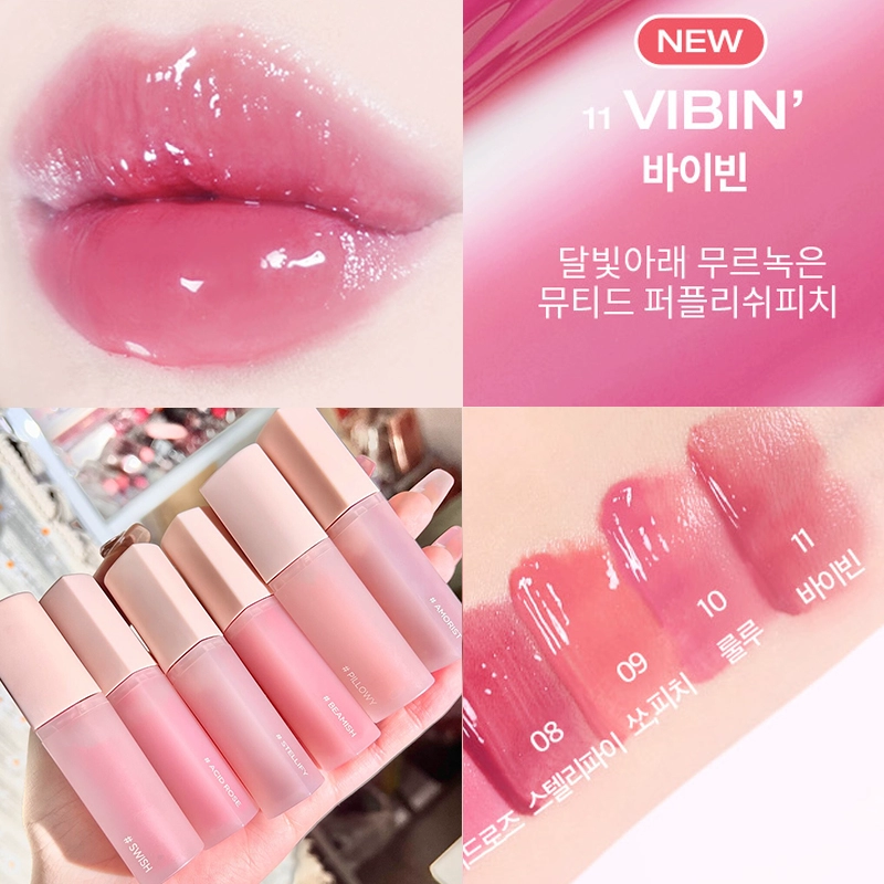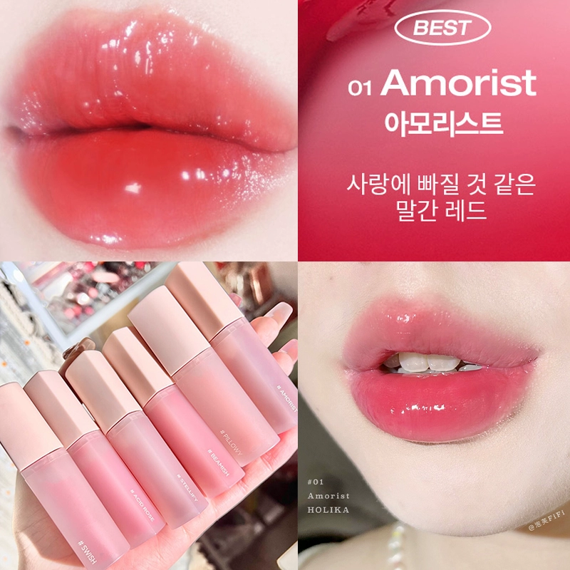 holika water-glossy milk tea color love lip glaze