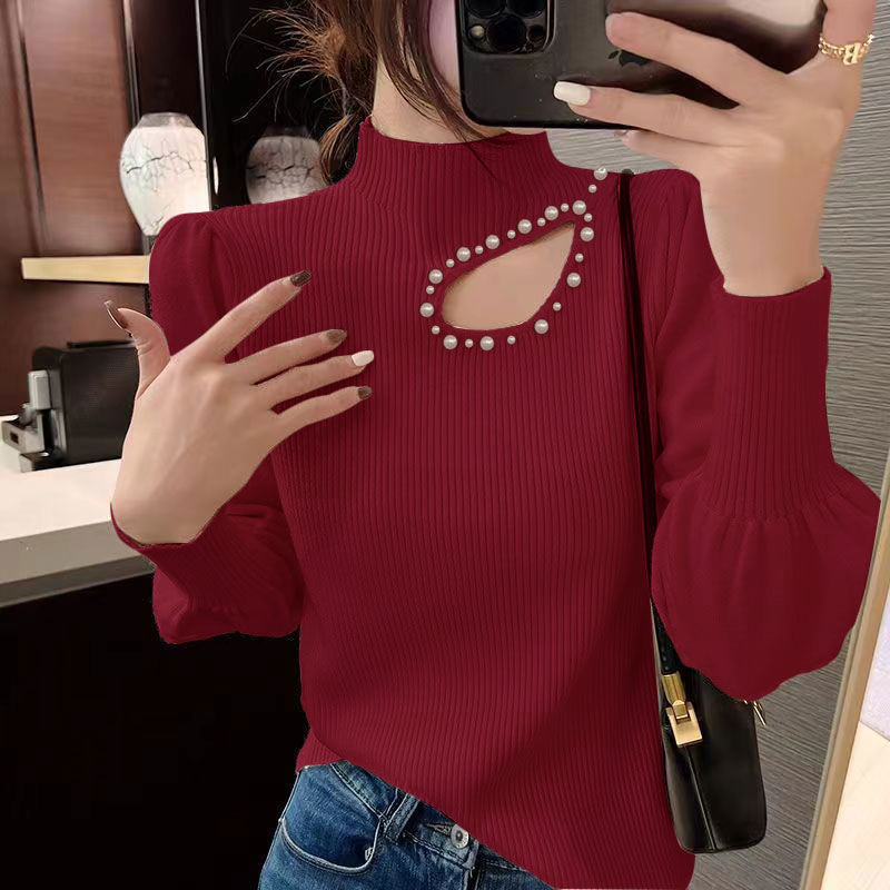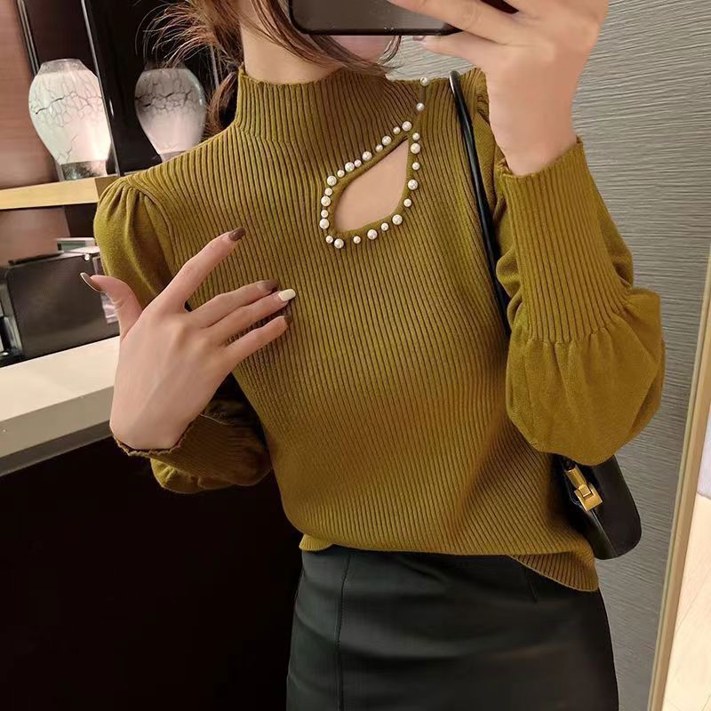 | nameOriginal | Hollow beaded sweater bottoming shirt for Women New 2023 autumn and winter half turtleneck long sleeve bottoming shirt fashionable design |