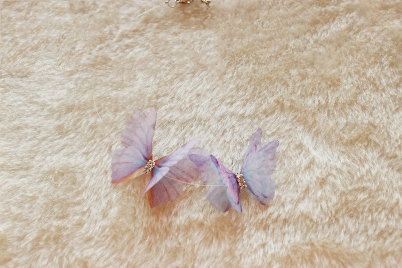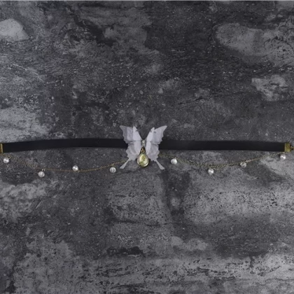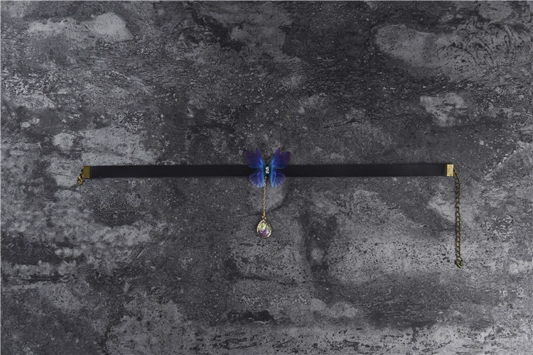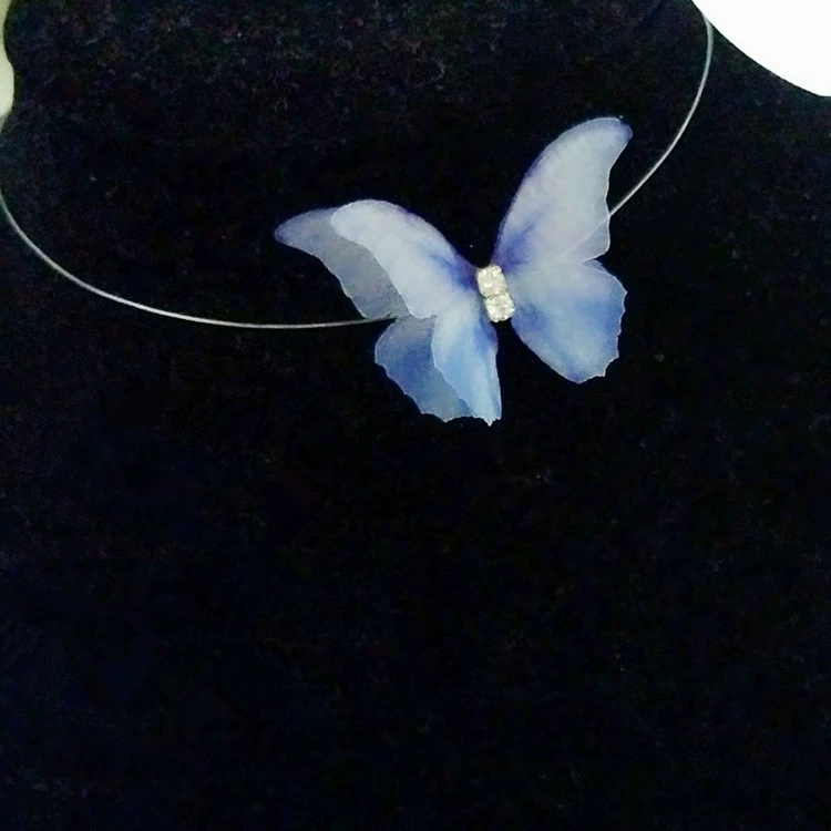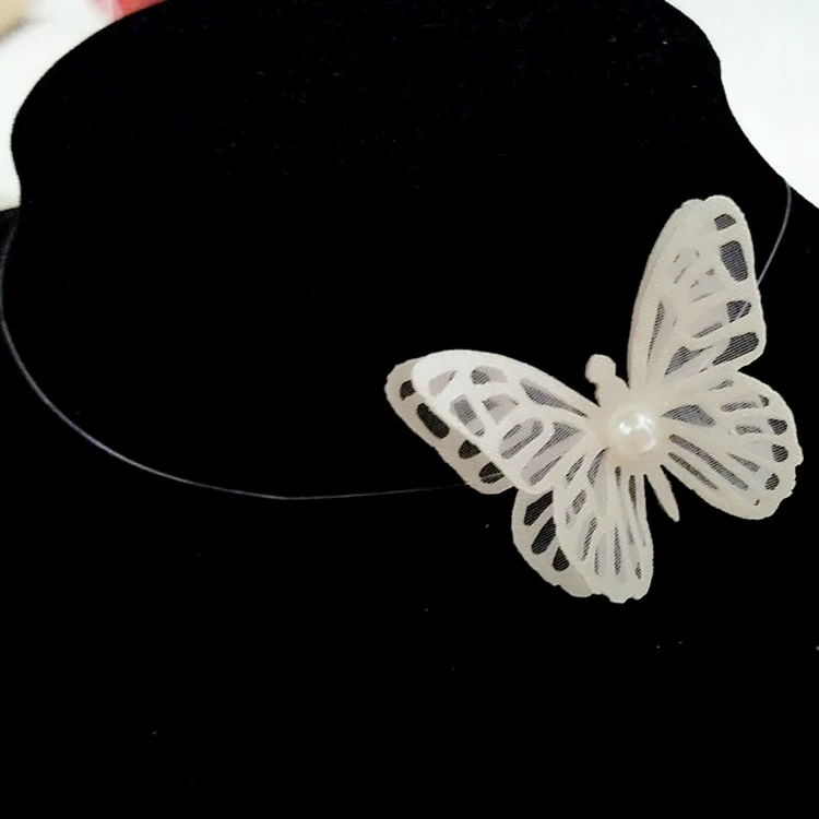 Hollow black and white multi-layer invisible fish line tulle fairy butterfly short necklace choker neck chain clavicle chain adjustable