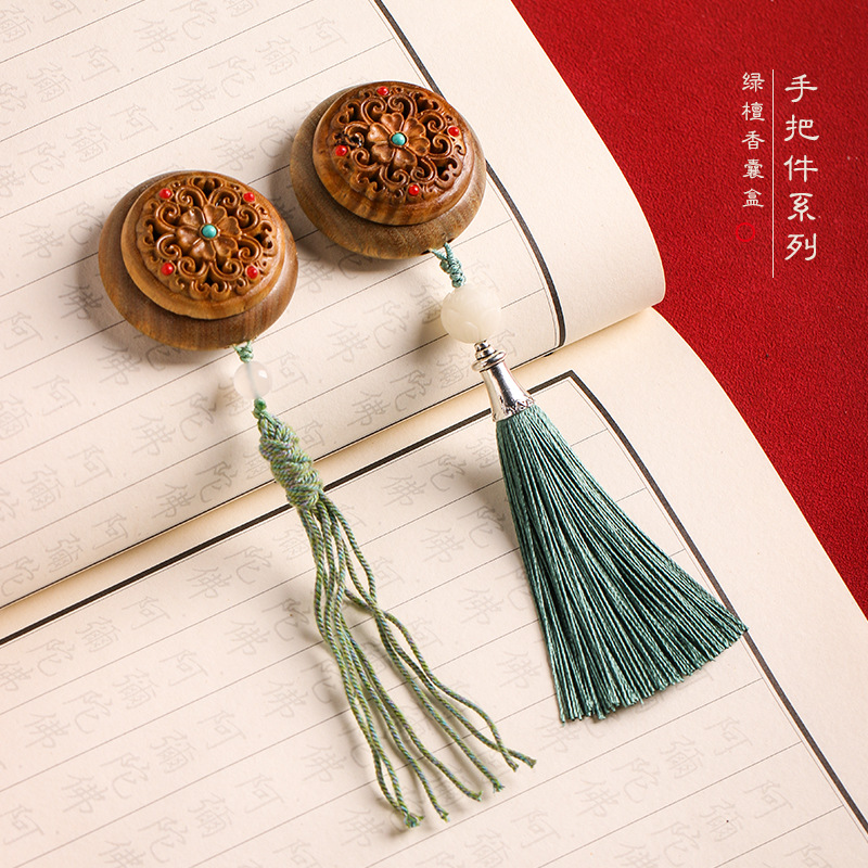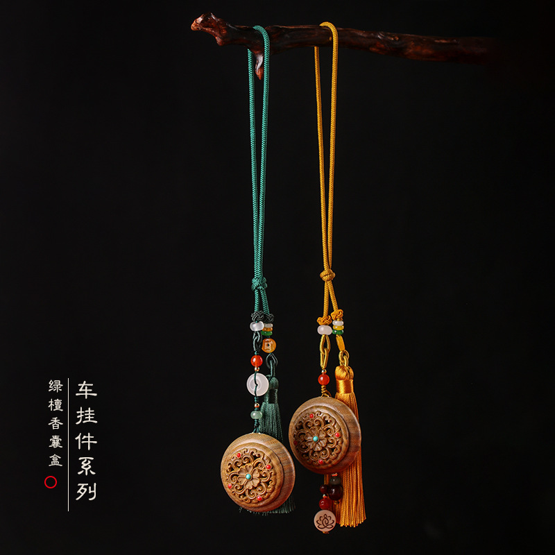 | nameOriginal | Hollow Carved Green Sandalwood Pendant Sachet Box Pendant Small Ornaments Men's and Women's Tassel Car Pendant Incense Hand Handle |