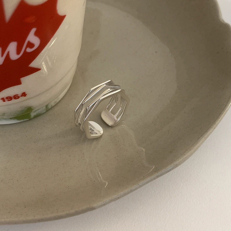 | nameOriginal | Hollow circle ring for women, geometric multi-layered lines, stacked sweet S925 silver open ring, personalized index finger ring trend |