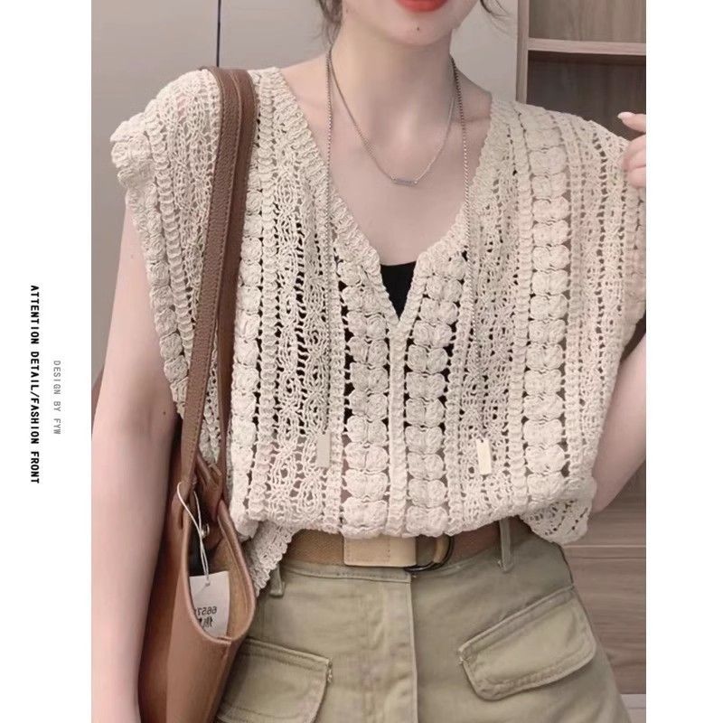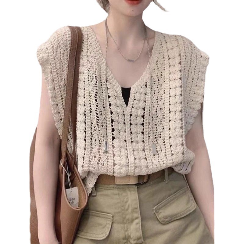 | nameOriginal | Hollow Crochet V-neck Vest Sweater Summer New Trendy Design Sense Sleeveless Korean Top Women's Ins Sweet Top |