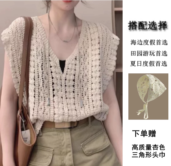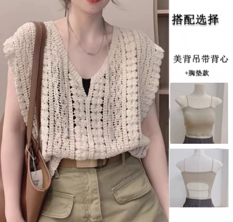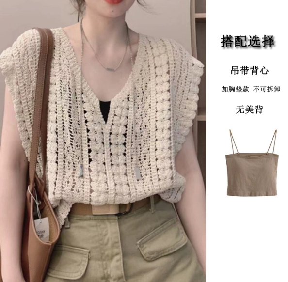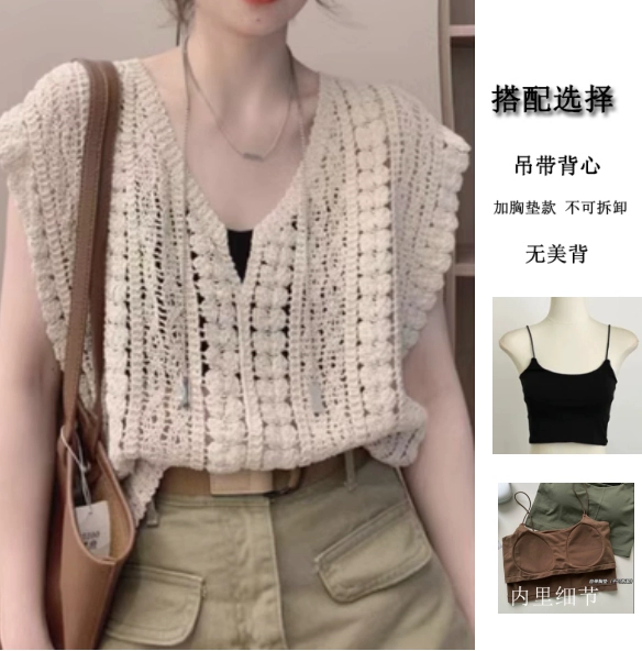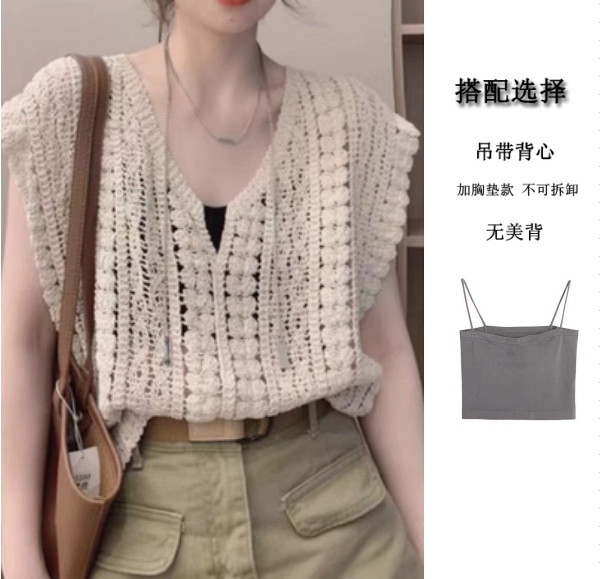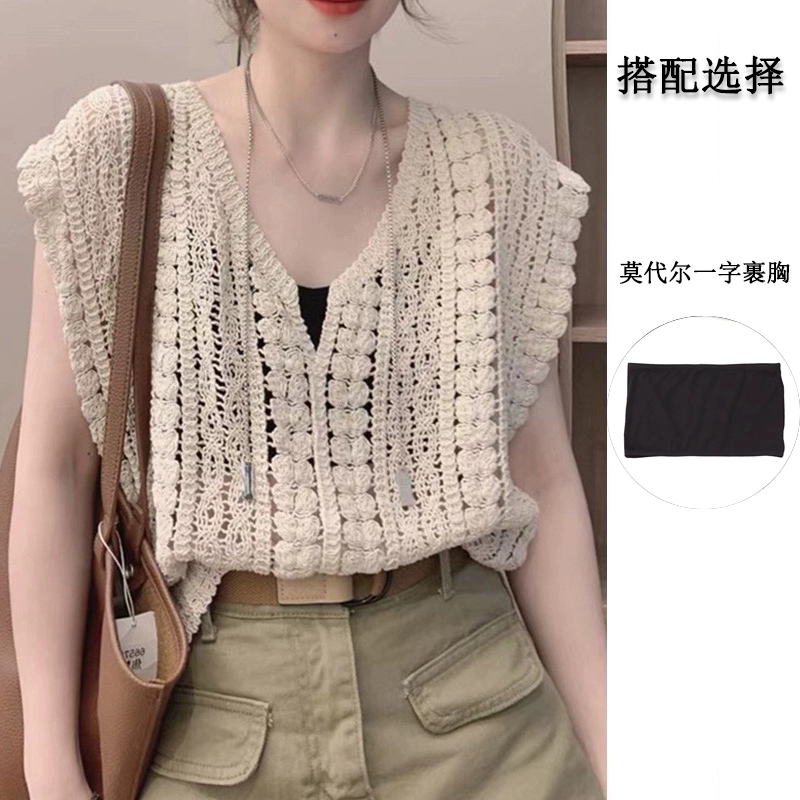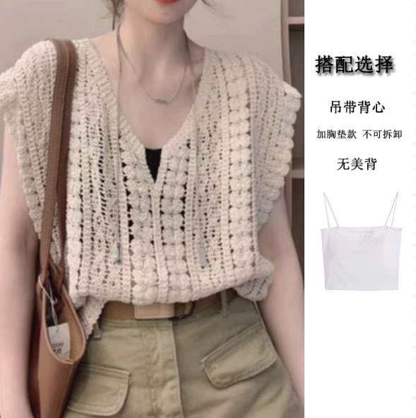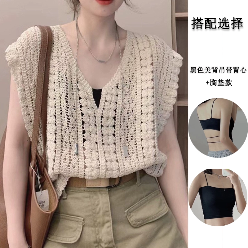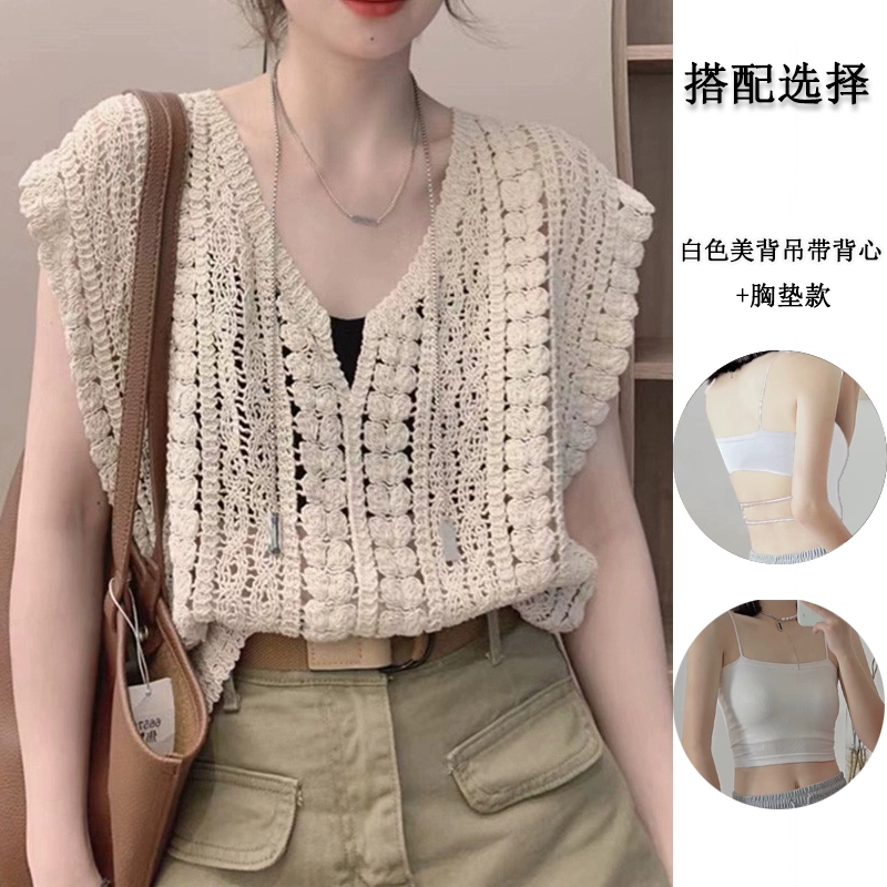 Hollow crocheted V-neck vest sweater summer new trendy design with sleeveless Korean style top for women ins sweet