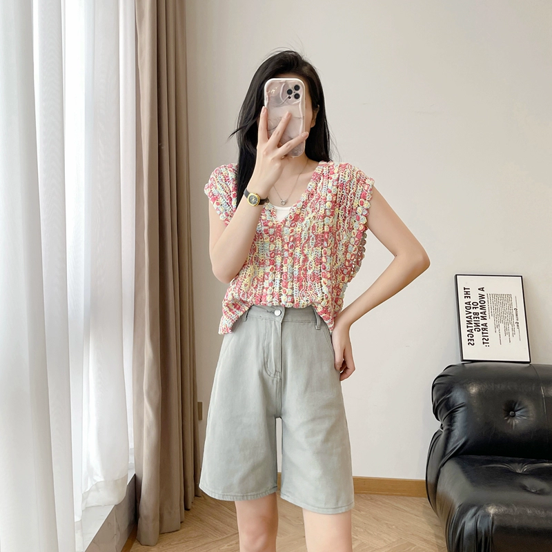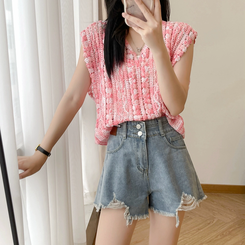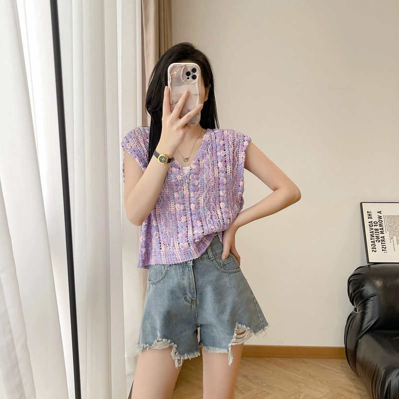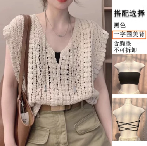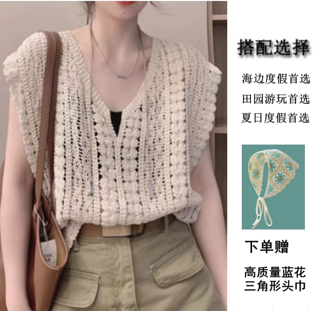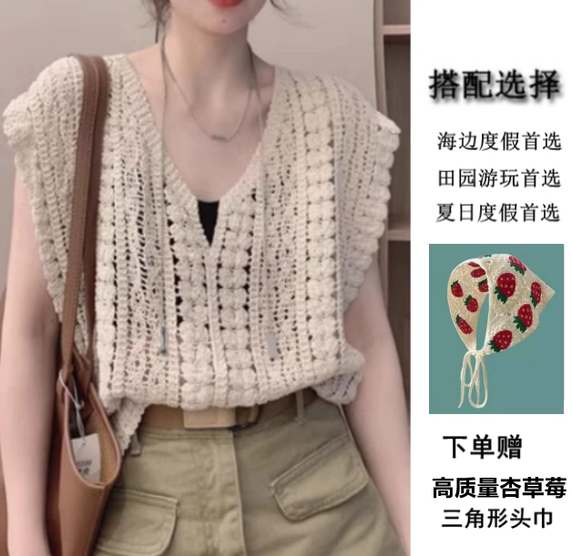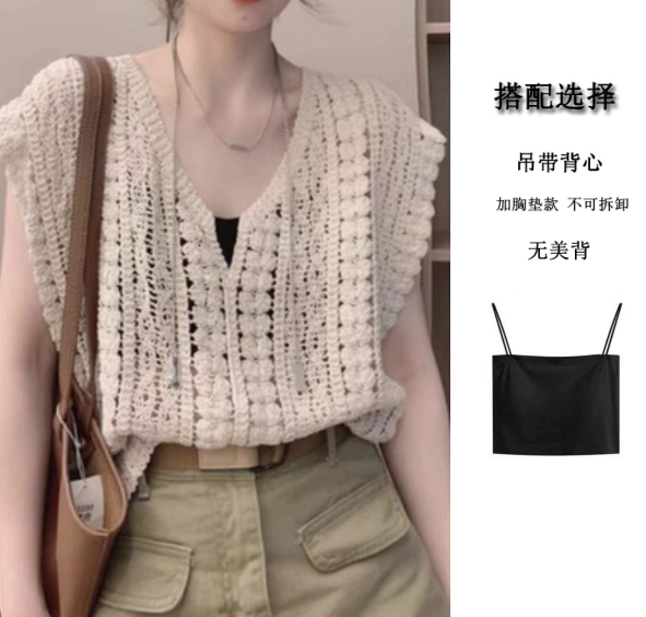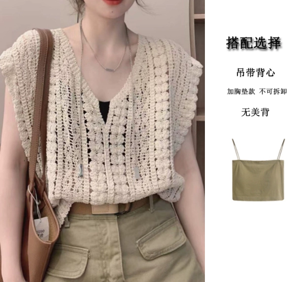 Hollow crocheted V-neck vest sweater summer new trendy design with sleeveless Korean style top for women ins sweet