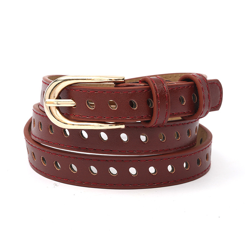 Hollow decorative ladies thin belt belt pin buckle whole belt has holes] simple versatile women’s belt