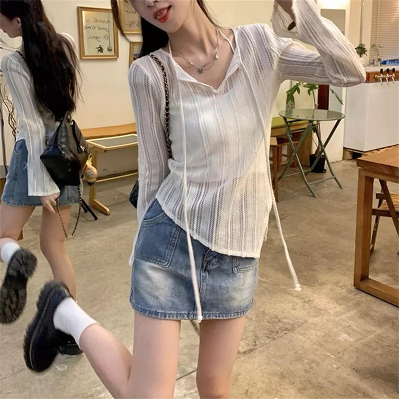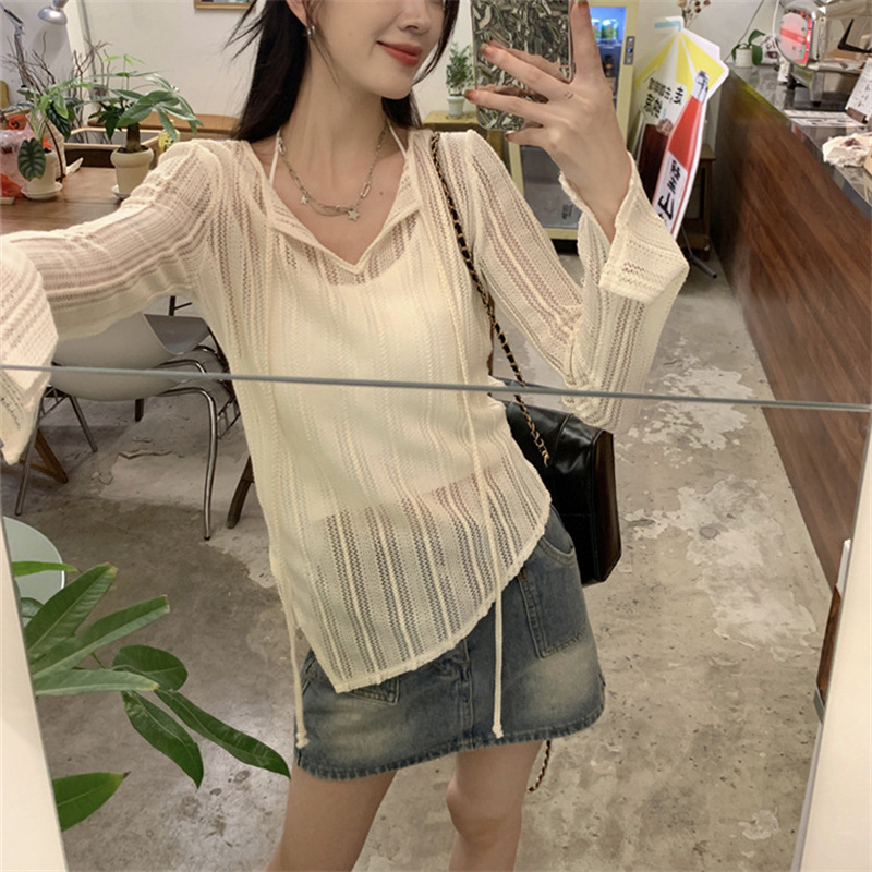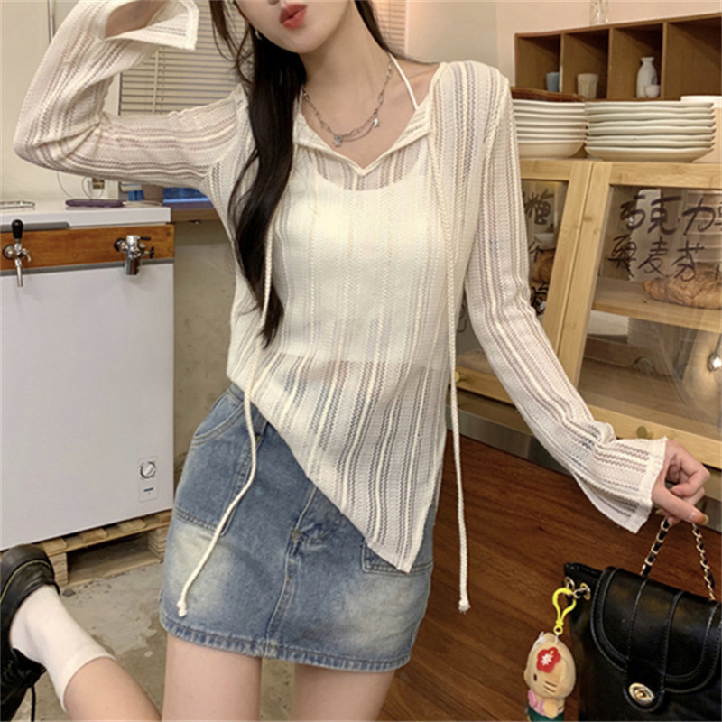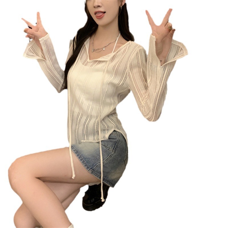 | nameOriginal | Hollow Design Sunscreen Blouse 2024 Summer Women's Korean-style Loose Hole Long-sleeved Knit Women's Thin Top |