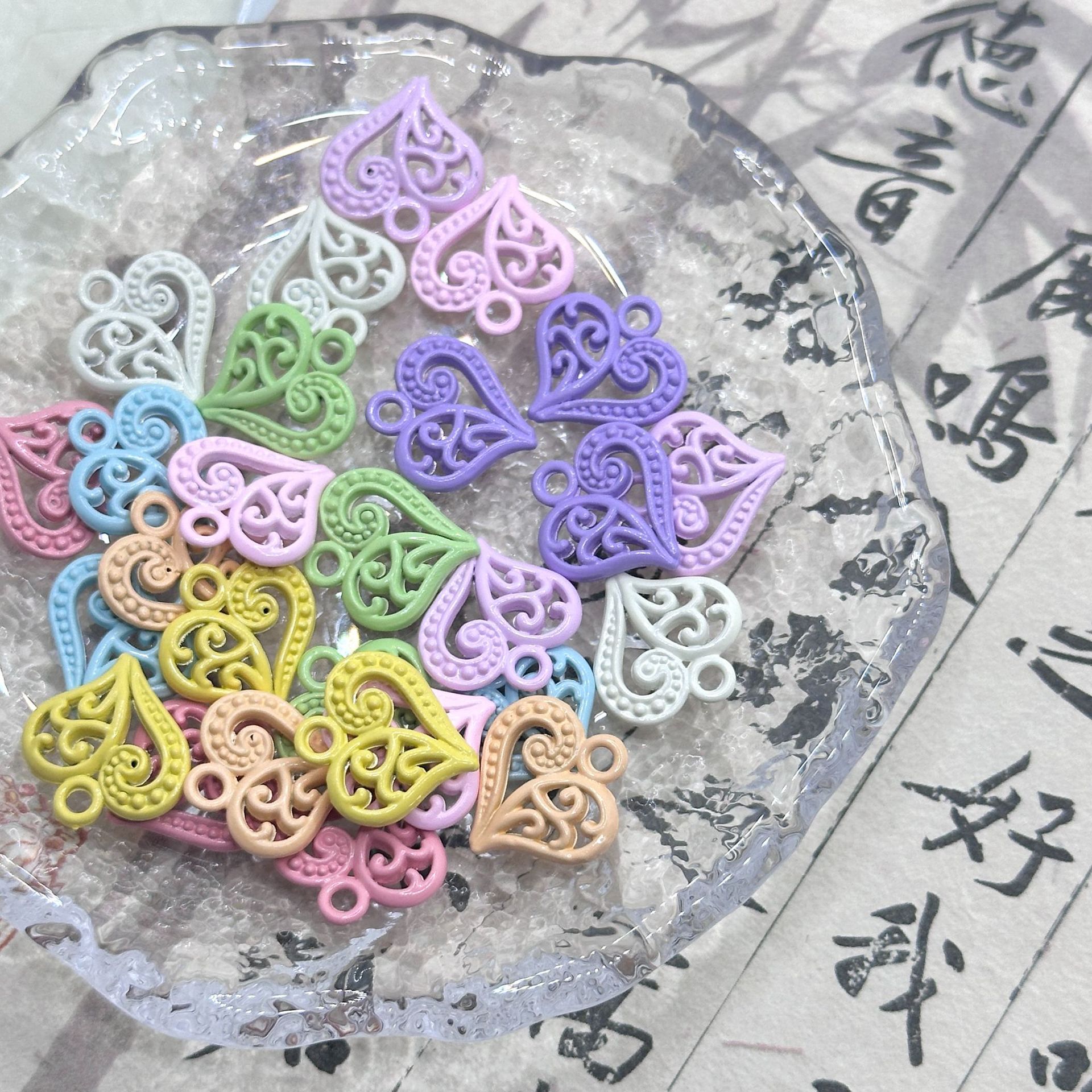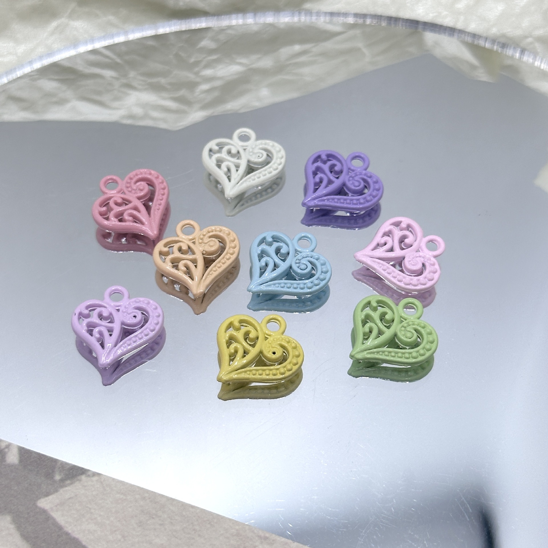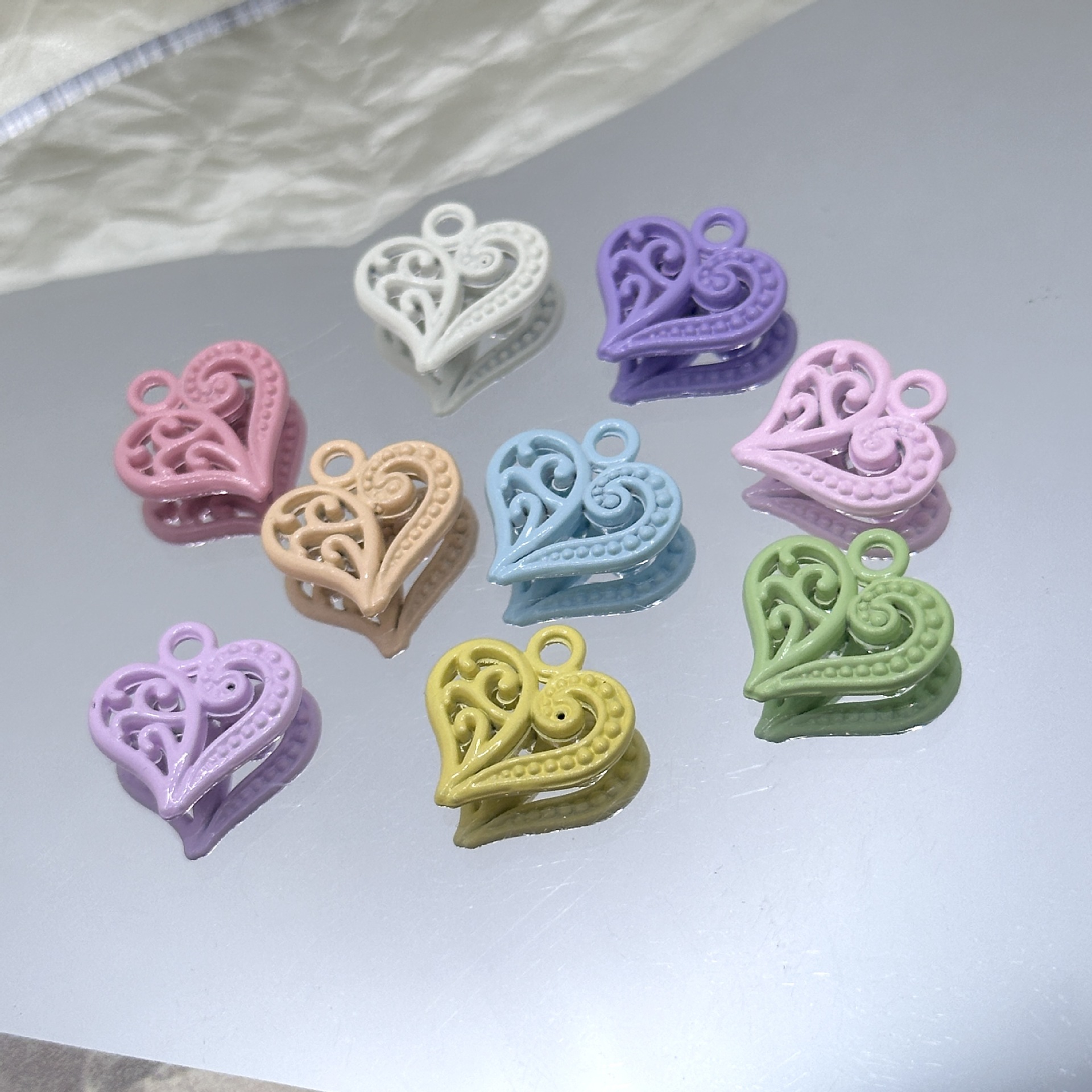 Hollow heart love heart dopamine beads DIY alloy paint jewelry accessories bracelet mobile phone chain beads