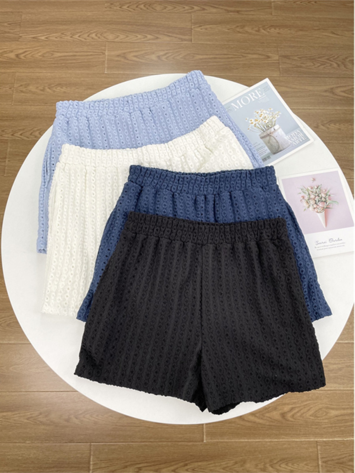 | nameOriginal | Hollow Jacquard Summer Casual Elastic Waist Multicolor Shorts |