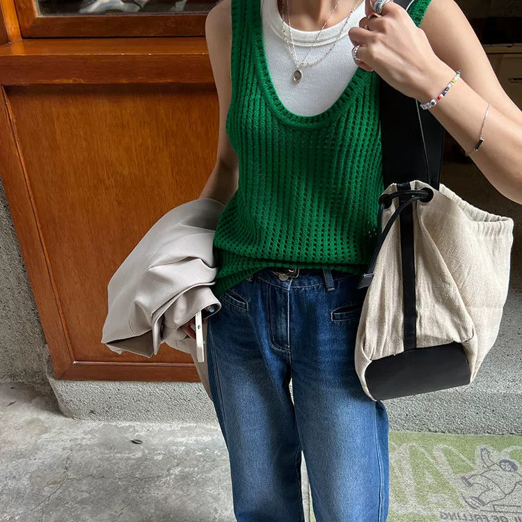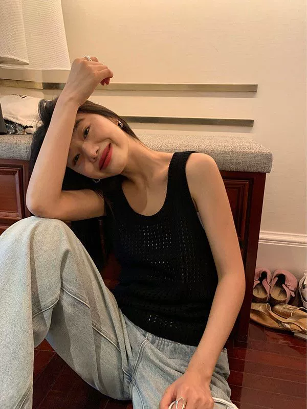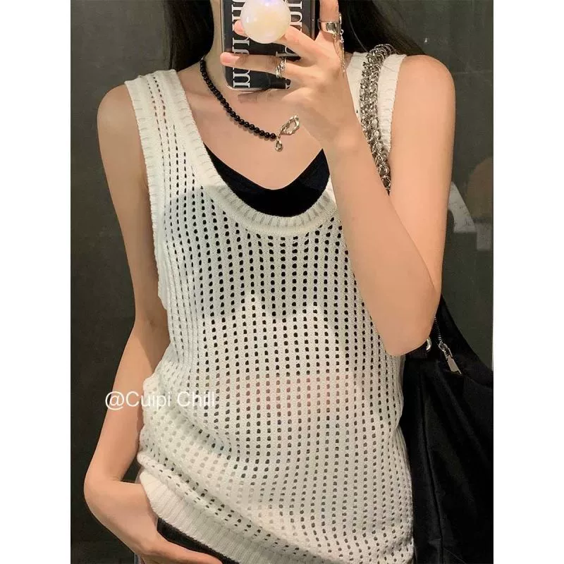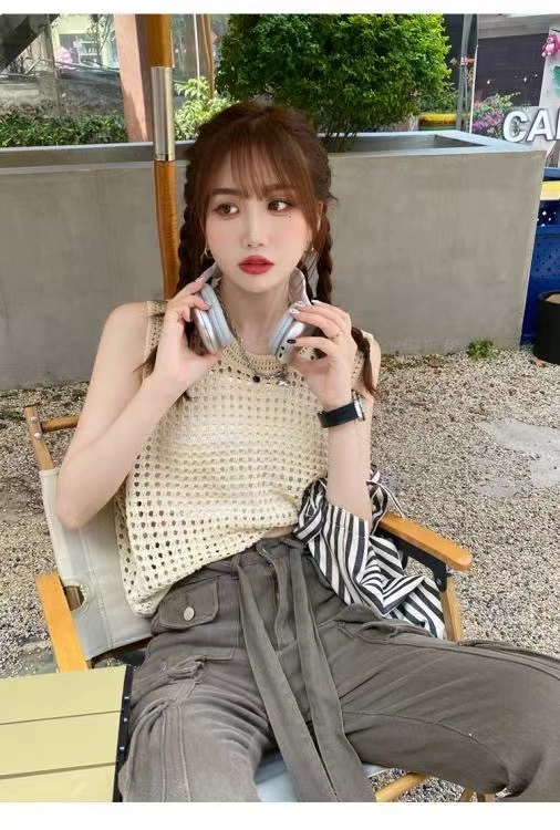 | nameOriginal | Hollow knitted suspender design niche sleeveless waistcoat |