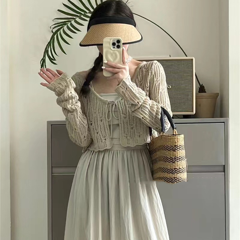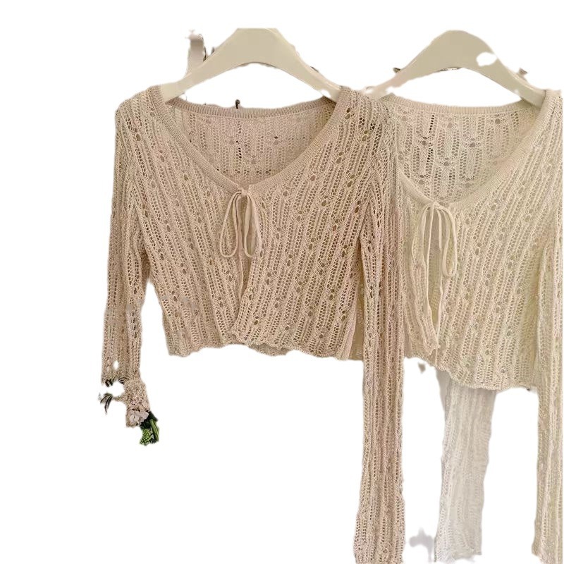 | nameOriginal | Hollow Lace-up Air-conditioning Shirt Korean Style Design Hollow Knitted Shawl Summer New Style Elegant Dress for Women |
