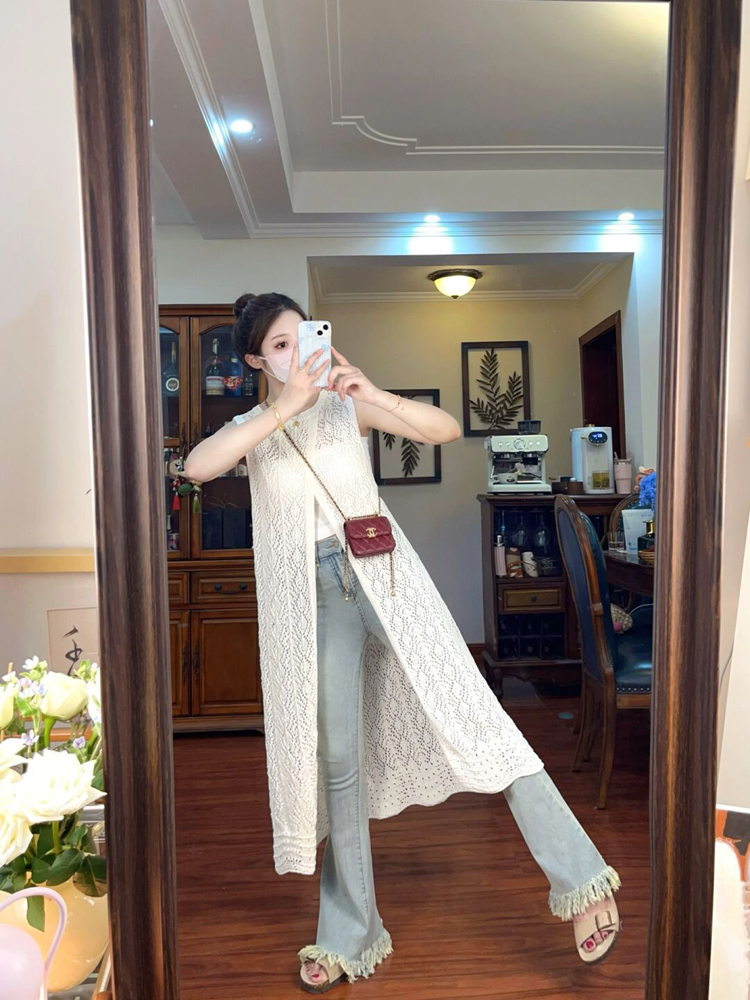 Hollow layered ins thin vest slit long skirt