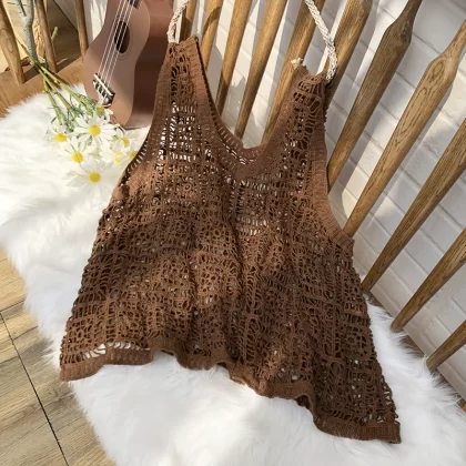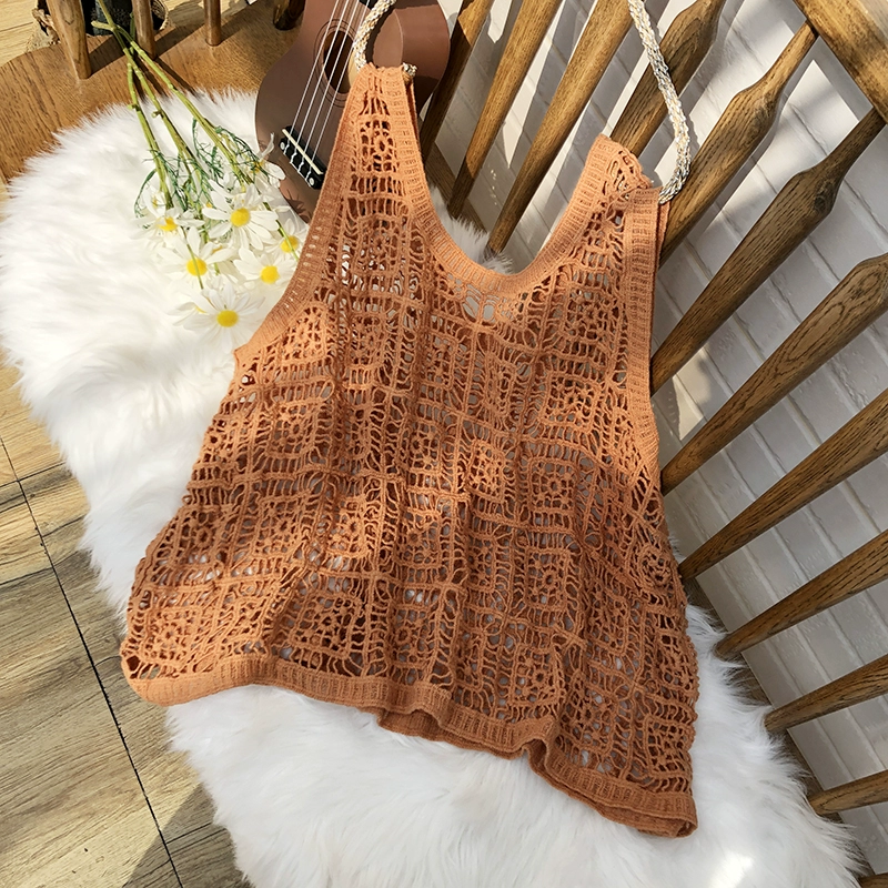 Hollow loose round neck short spring and summer vest with crochet pattern