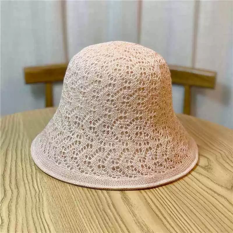 Hollow niche bucket hat female versatile spring summer autumn net red travel can be folding Japanese sunscreen breathable pot tide