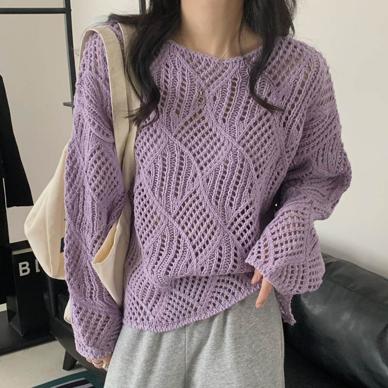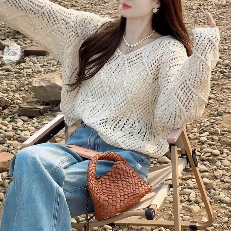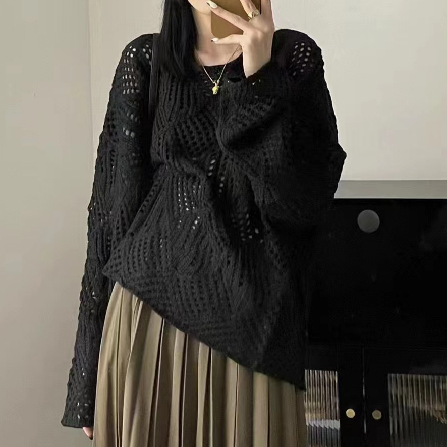 | nameOriginal | Hollow-out Knitted Sweater Women's 2024 Spring Summer Autumn Korean Style Design Sense Solid Color Lazy Style Sweater Base Sunscreen Blouse |