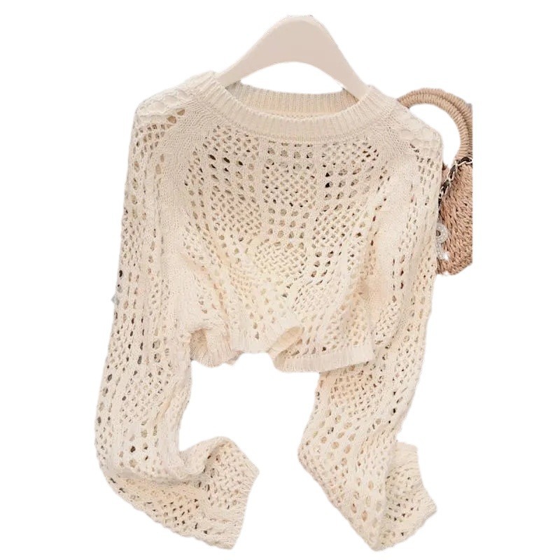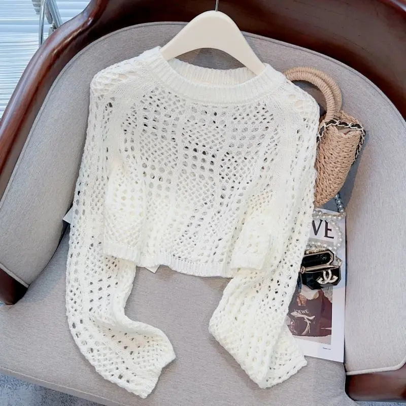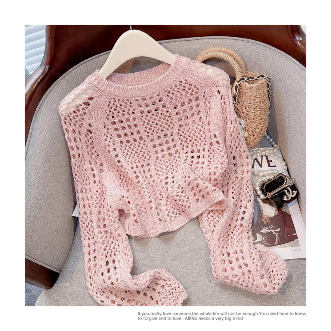 | nameOriginal | Hollow-out Long-sleeved Sweater Women's 2024 Summer New Short Sunscreen Blouse Chic Sweet Spice Top |