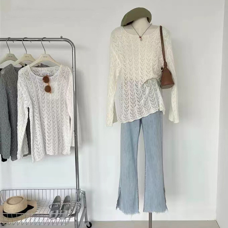 | nameOriginal | Hollow-out Thin Top Women's Loose Thin Lazy Style Long-sleeved Sunscreen Knitted Blouse for Summer 2024 |