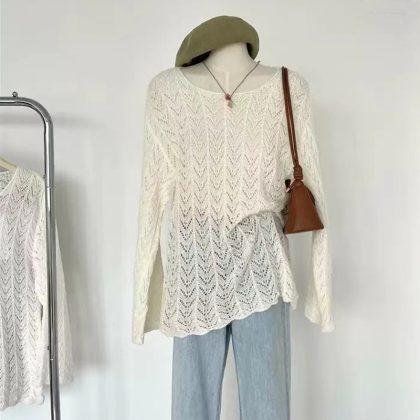 | nameOriginal | Hollow-out Thin Top Women's Loose Thin Lazy Style Long-sleeved Sunscreen Knitted Blouse for Summer 2024 |