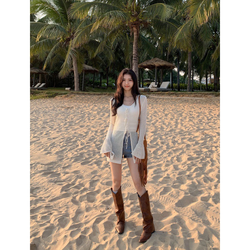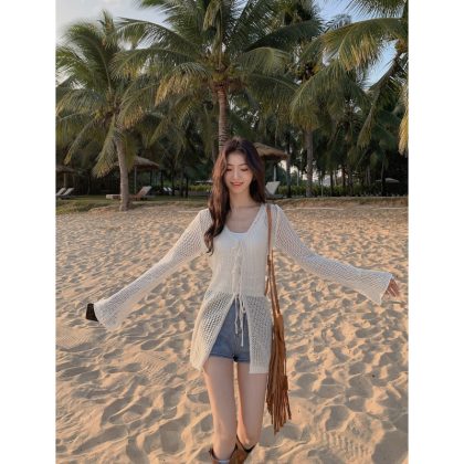 | nameOriginal | Hollow Out-Wearing Sunscreen Design Sense Knitwear Early Spring and Autumn New Slimming Long-Sleeved Niche Lace-Up Cardigan Jacket for Women |