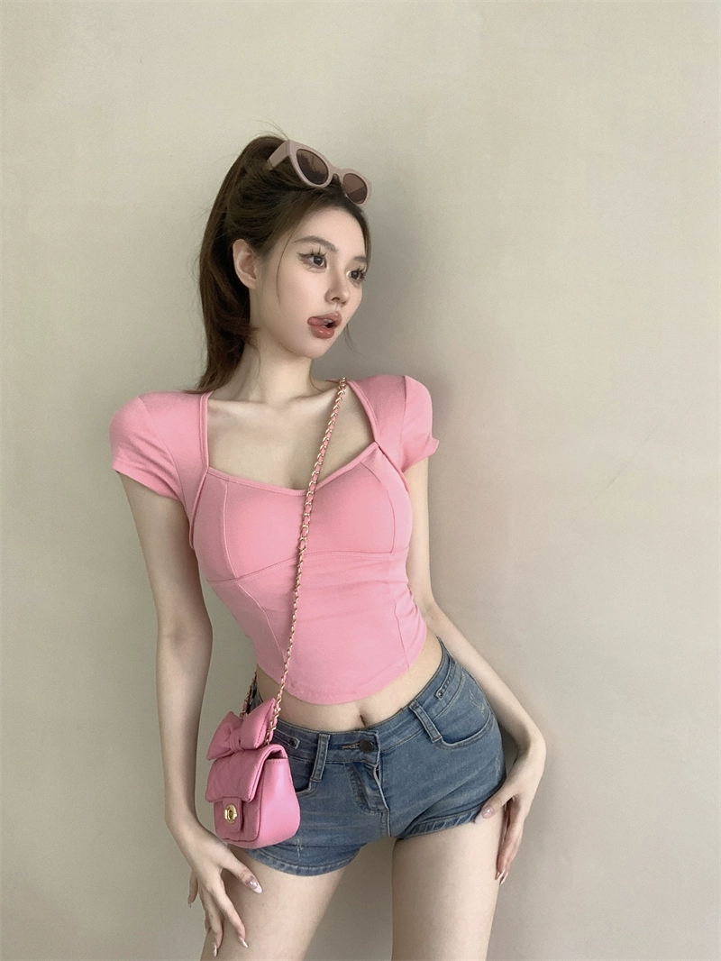 | nameOriginal | Hollow shoulder summer waist-cinching sexy short-sleeved T-shirt |