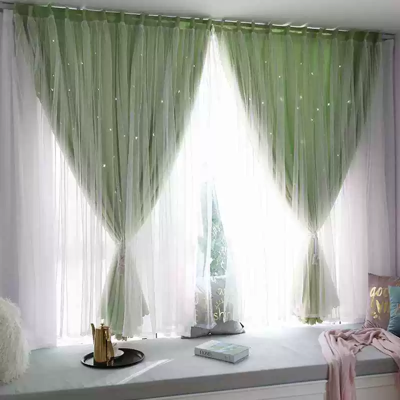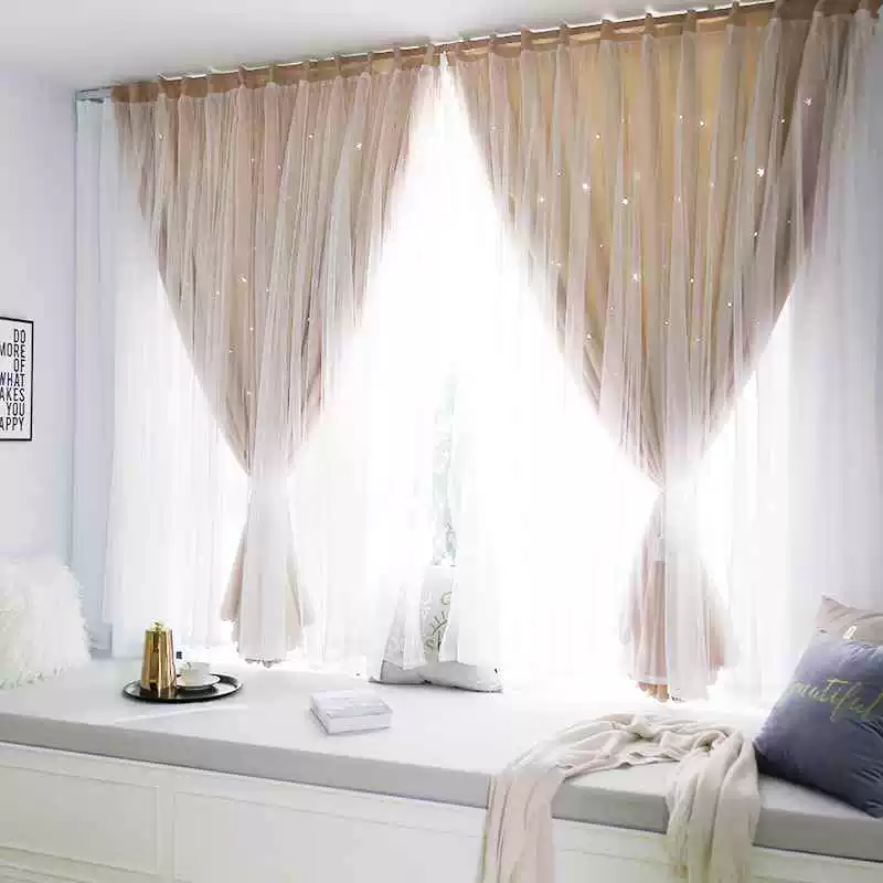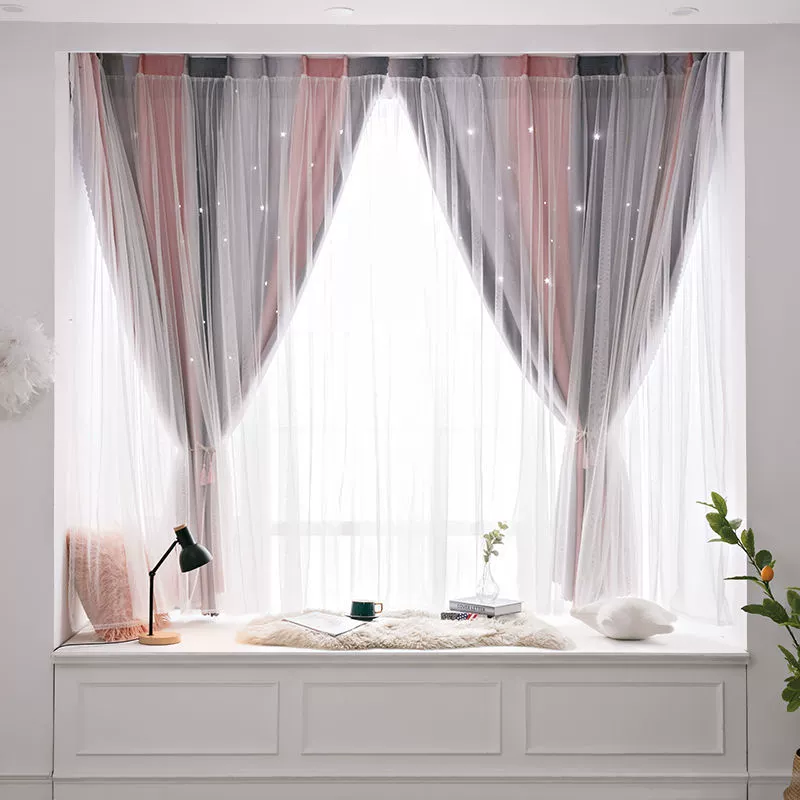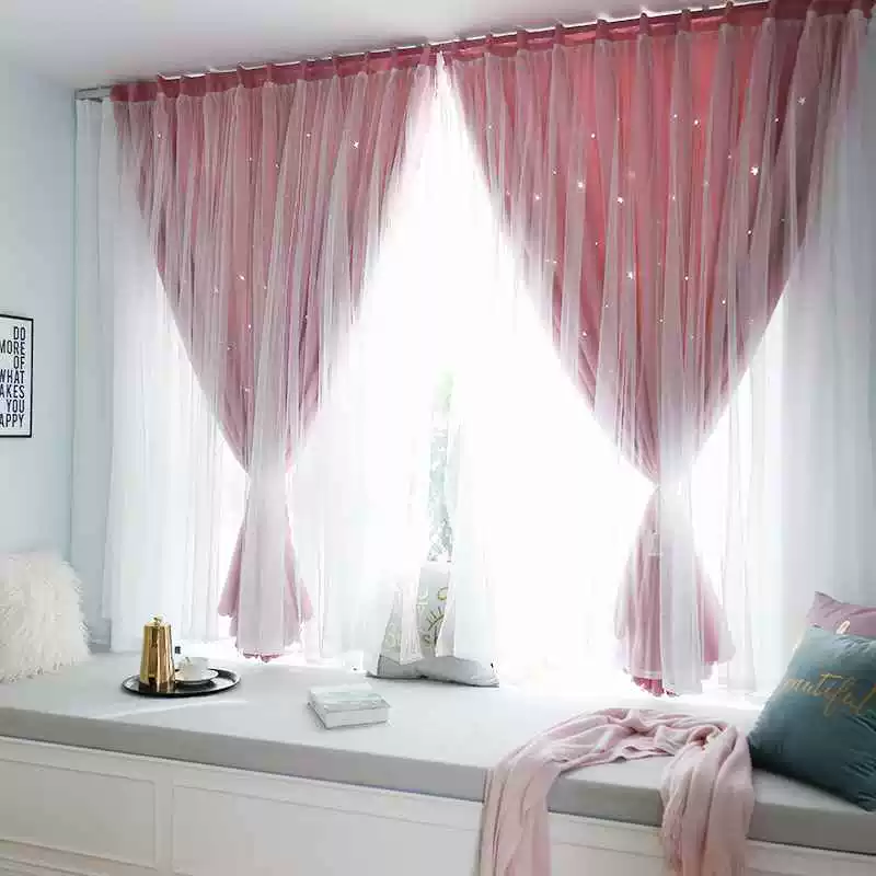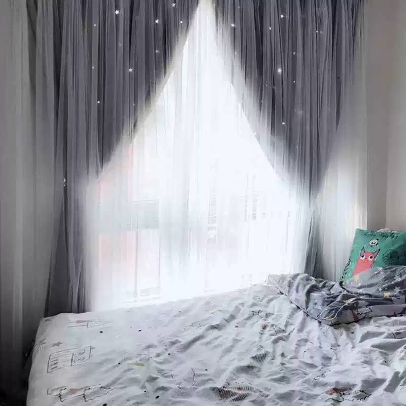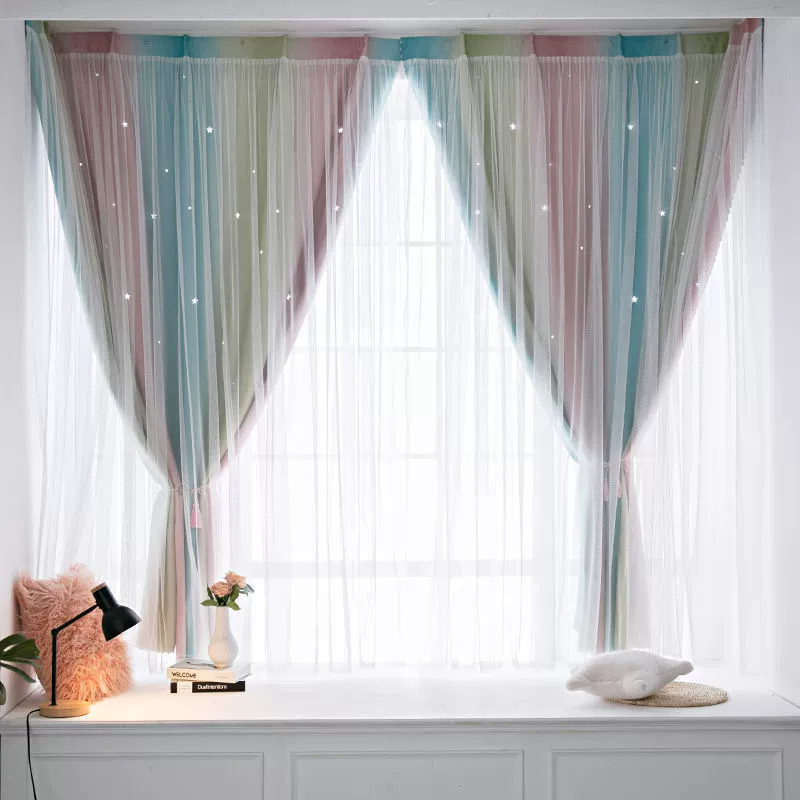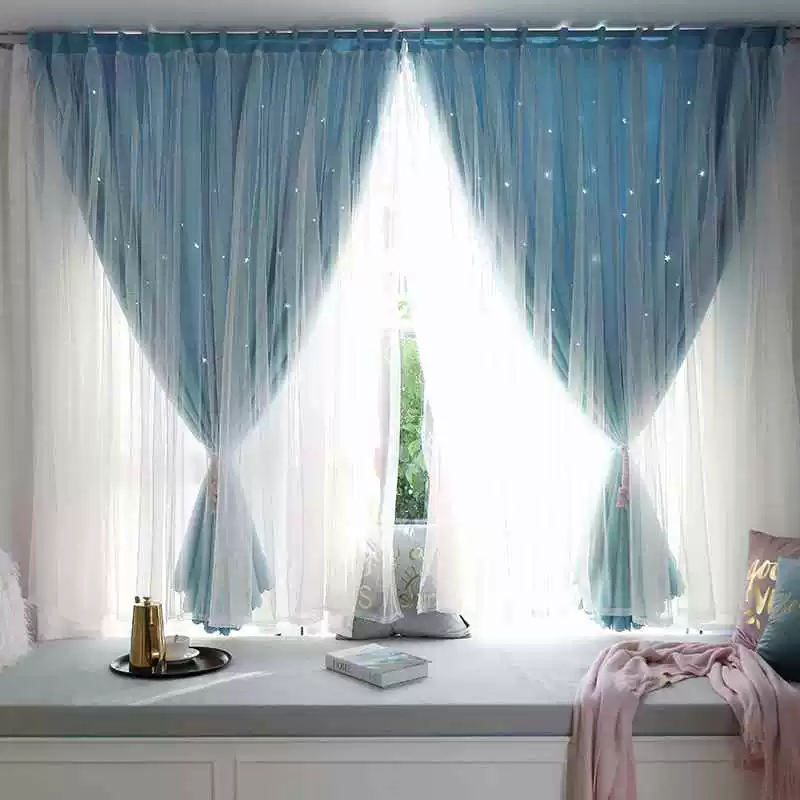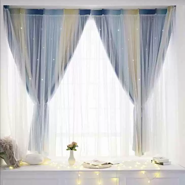 Hollow Star Gradient Double Layer Curtain Cloth Velcro