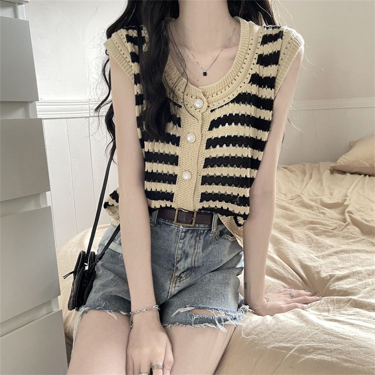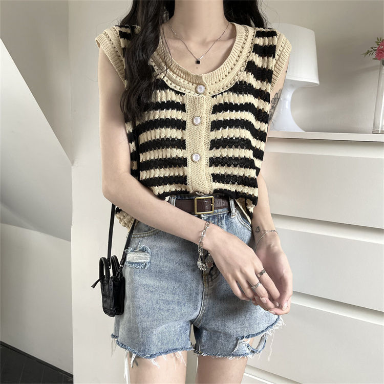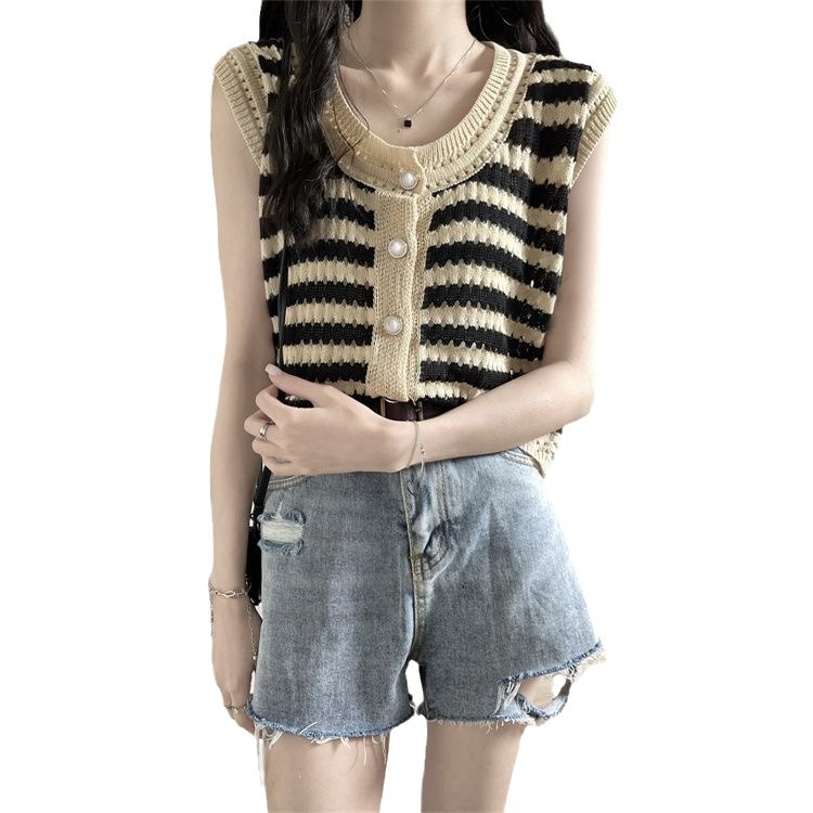 | nameOriginal | Hollow Striped Knitted Vest Summer Design Niche Sleeveless Loose Outer Wear Sling Vest Spice Girl Top |