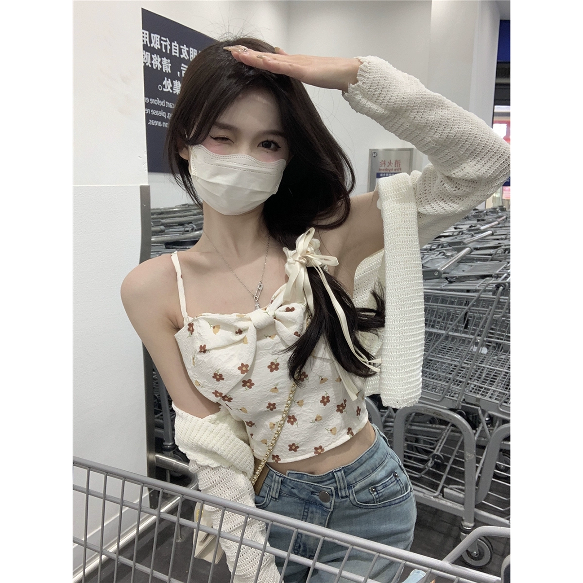| nameOriginal | Hollow sunscreen women's summer floral suspender knitted cardigan |