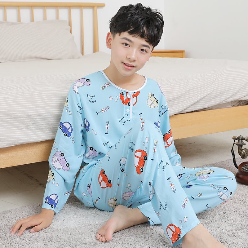 | nameOriginal | Home Clothes Loose Thin Summer Teenager Cotton Silk Pajamas suit Long-sleeved Cotton Silk Boys for Big Boys and Students |