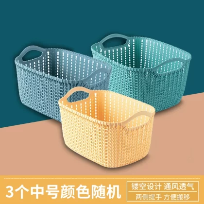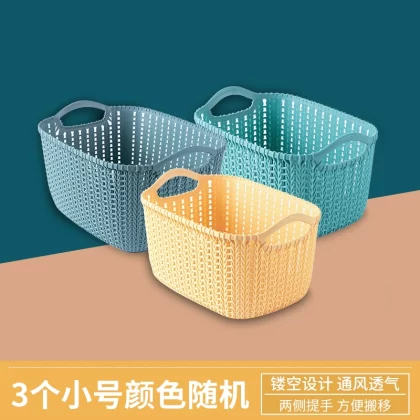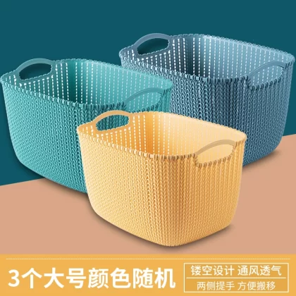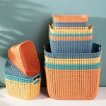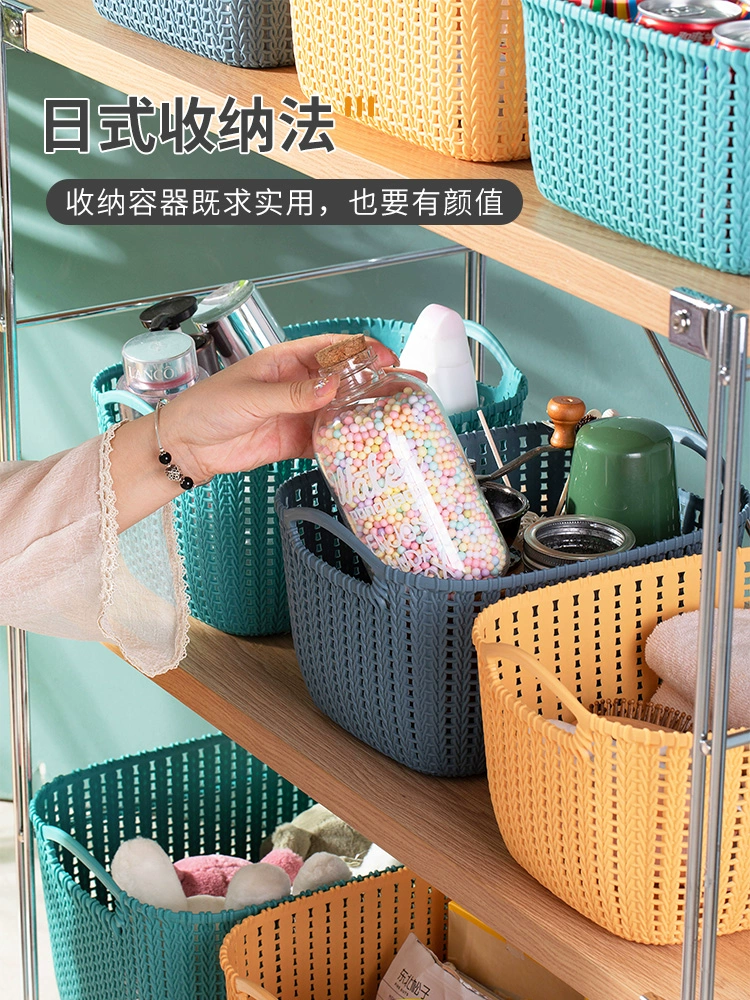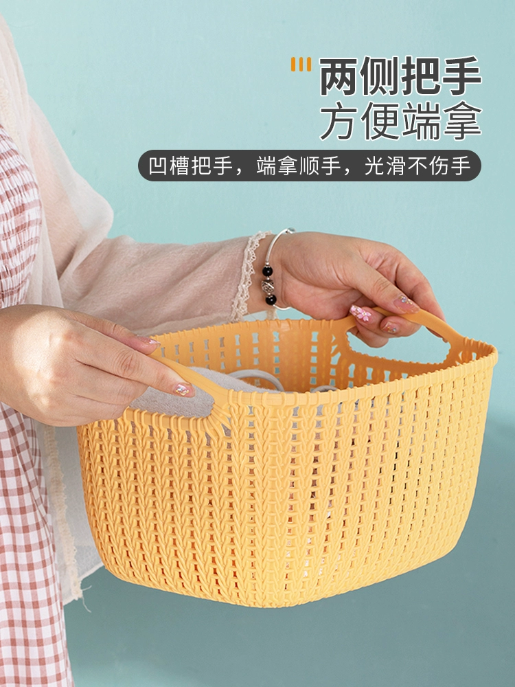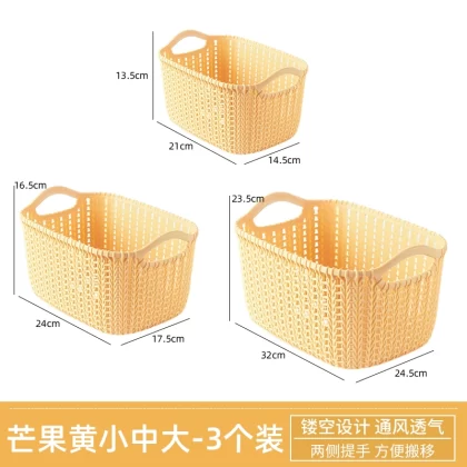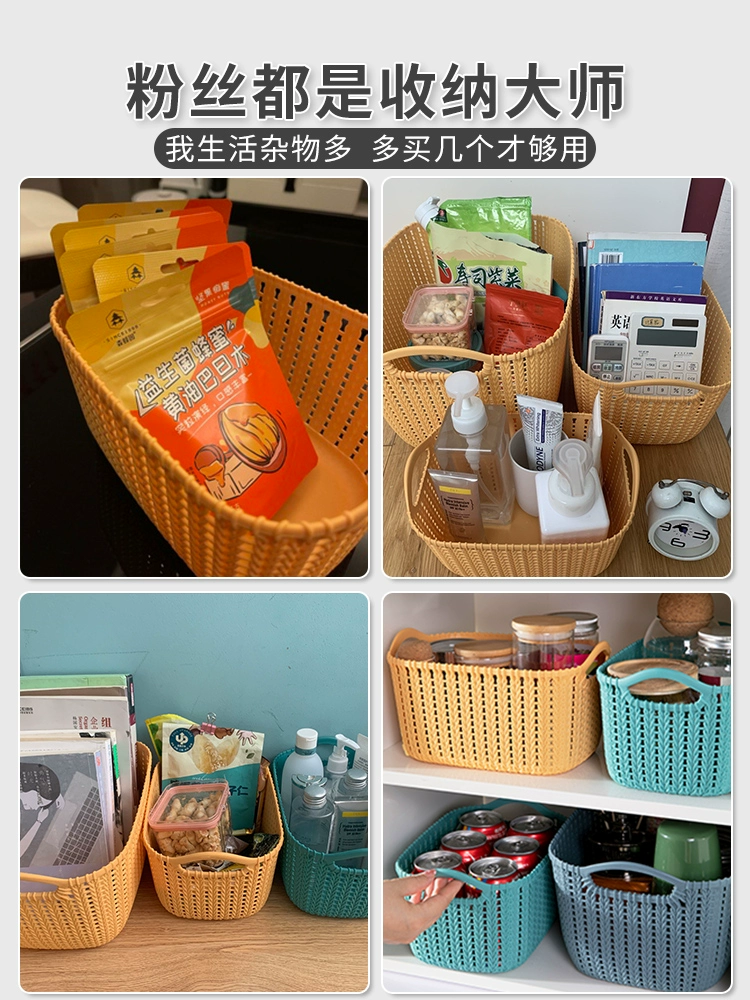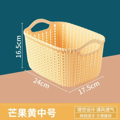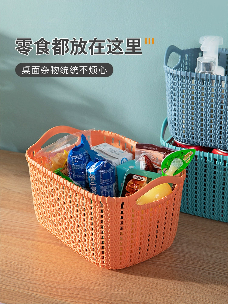 Home imitation rattan woven storage basket desktop storage box fruit snack organizer box plastic miscellaneous storage basket