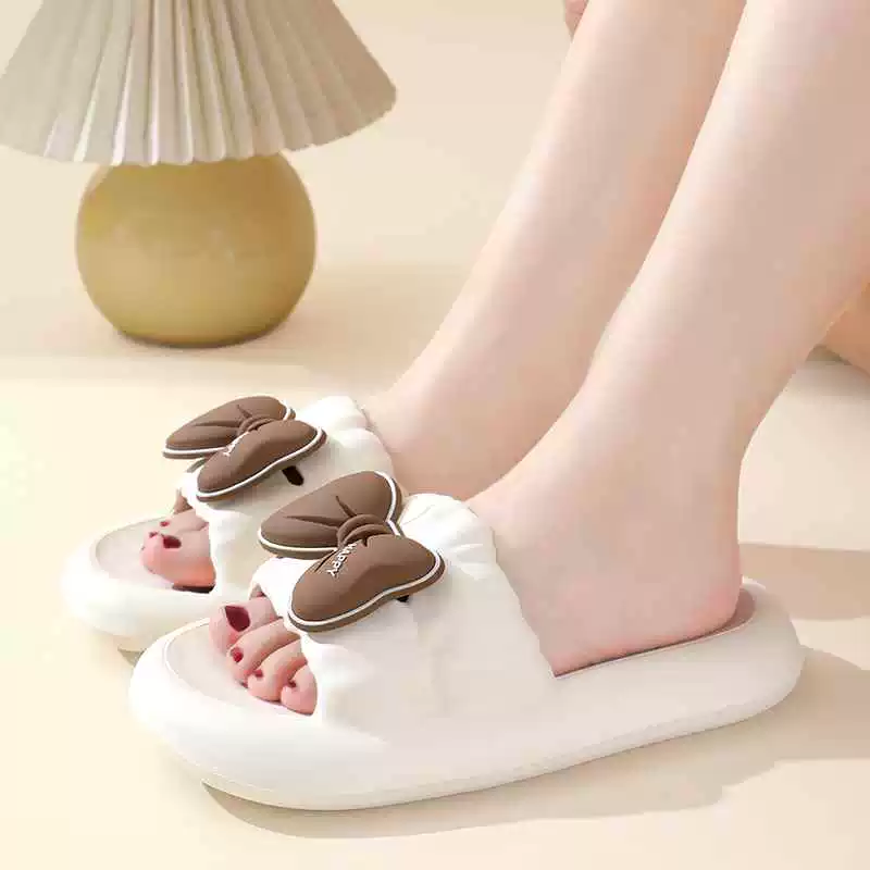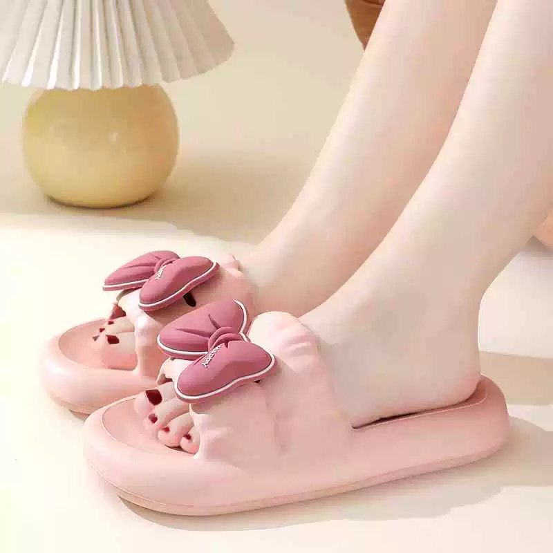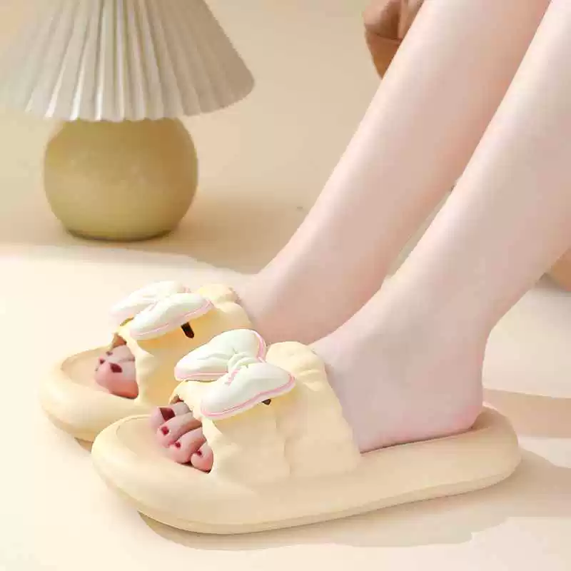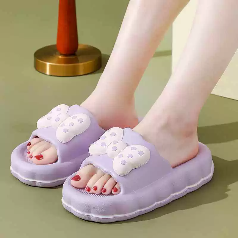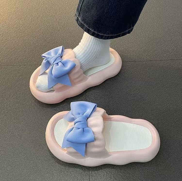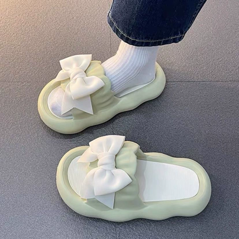 Home Korean style bow bathroom lightweight thick-soled slippers