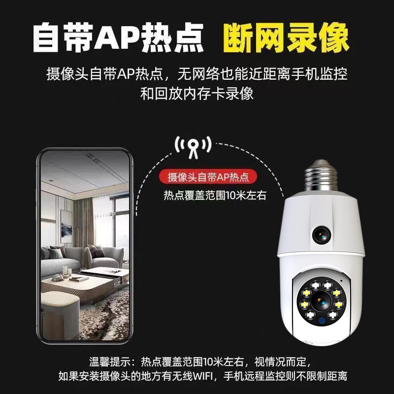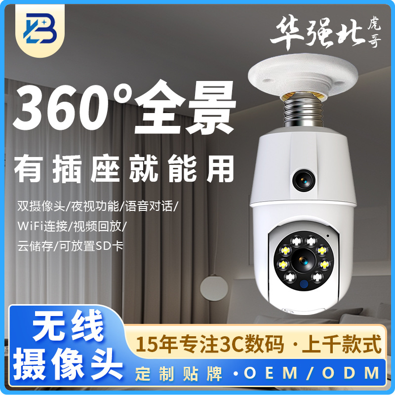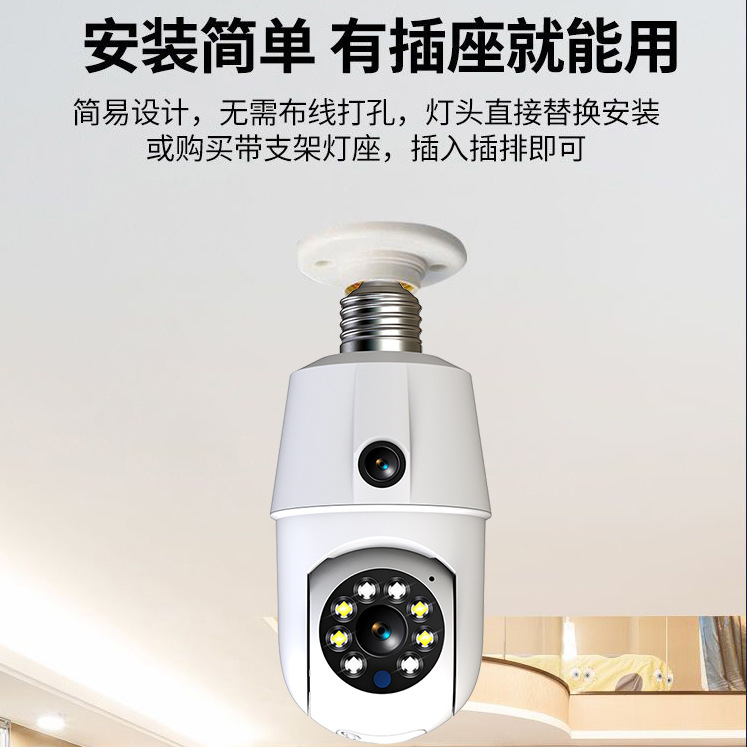 Home remote surveillance camera dual lens panoramic 360 rotating smart HD bulb ball surveillance camera