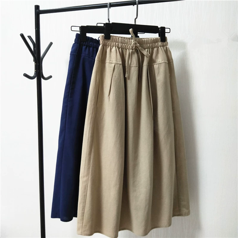 | nameOriginal | Homemade cotton and linen mid-length artistic A-line skirt |