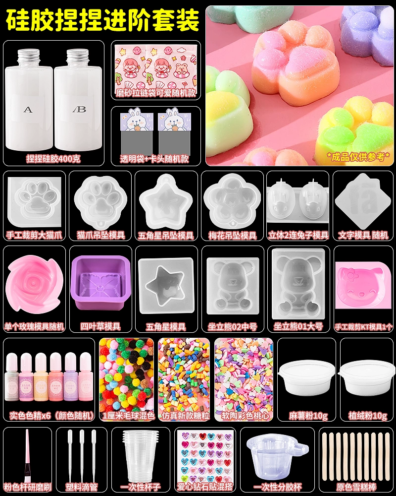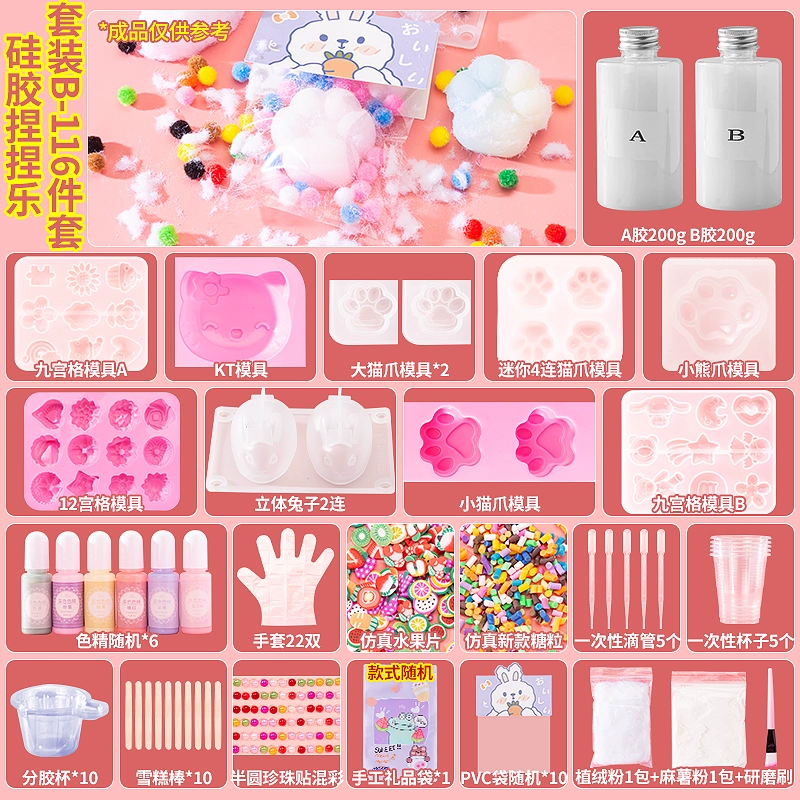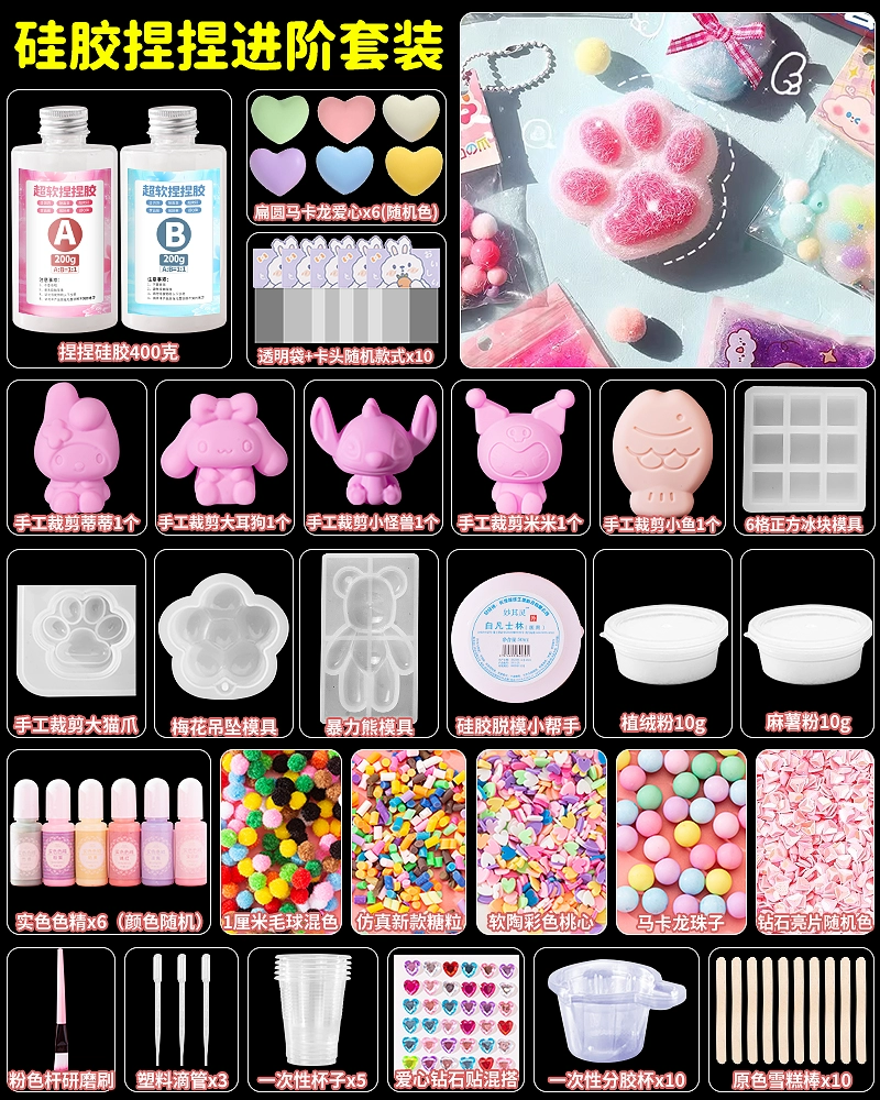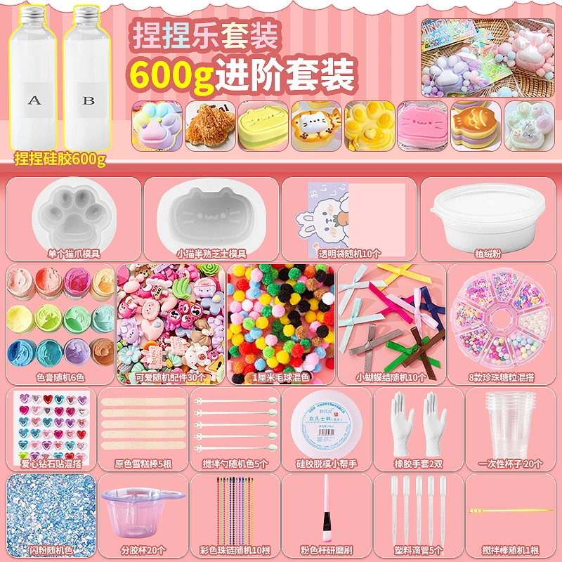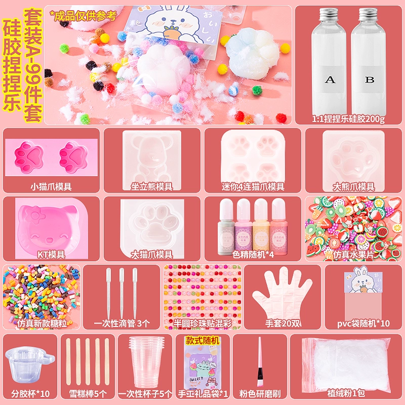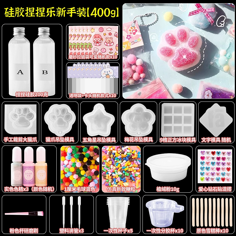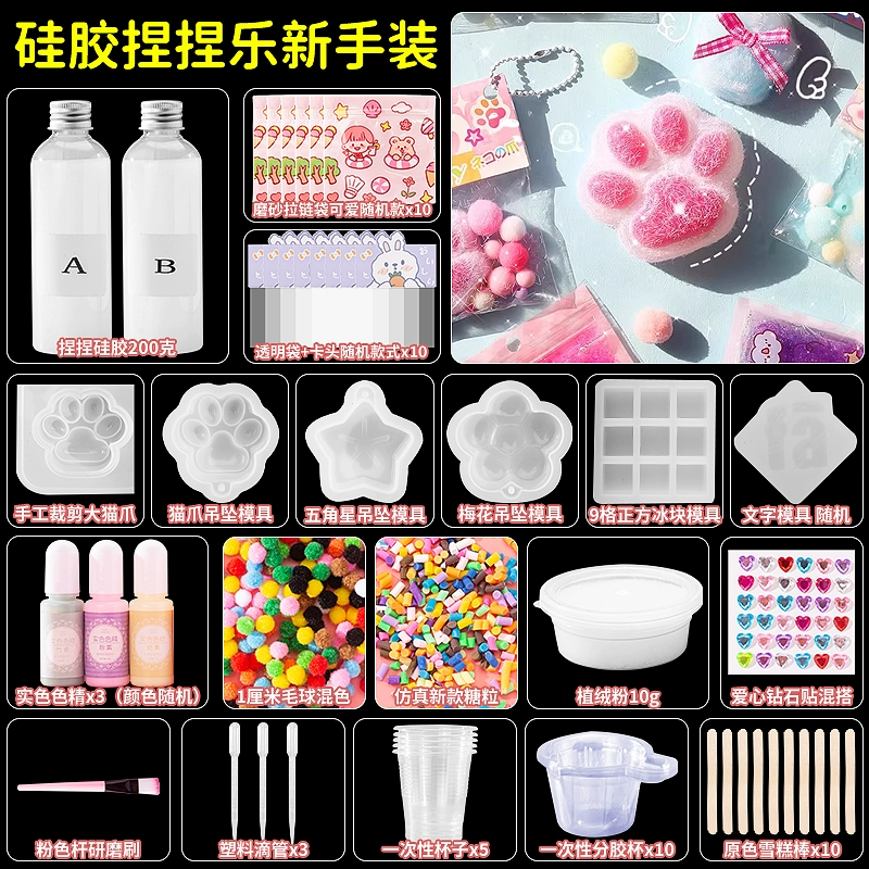 | nameOriginal | Homemade silicone pinch diy material package set for children handmade cat claw pinch decompression toy for girls |