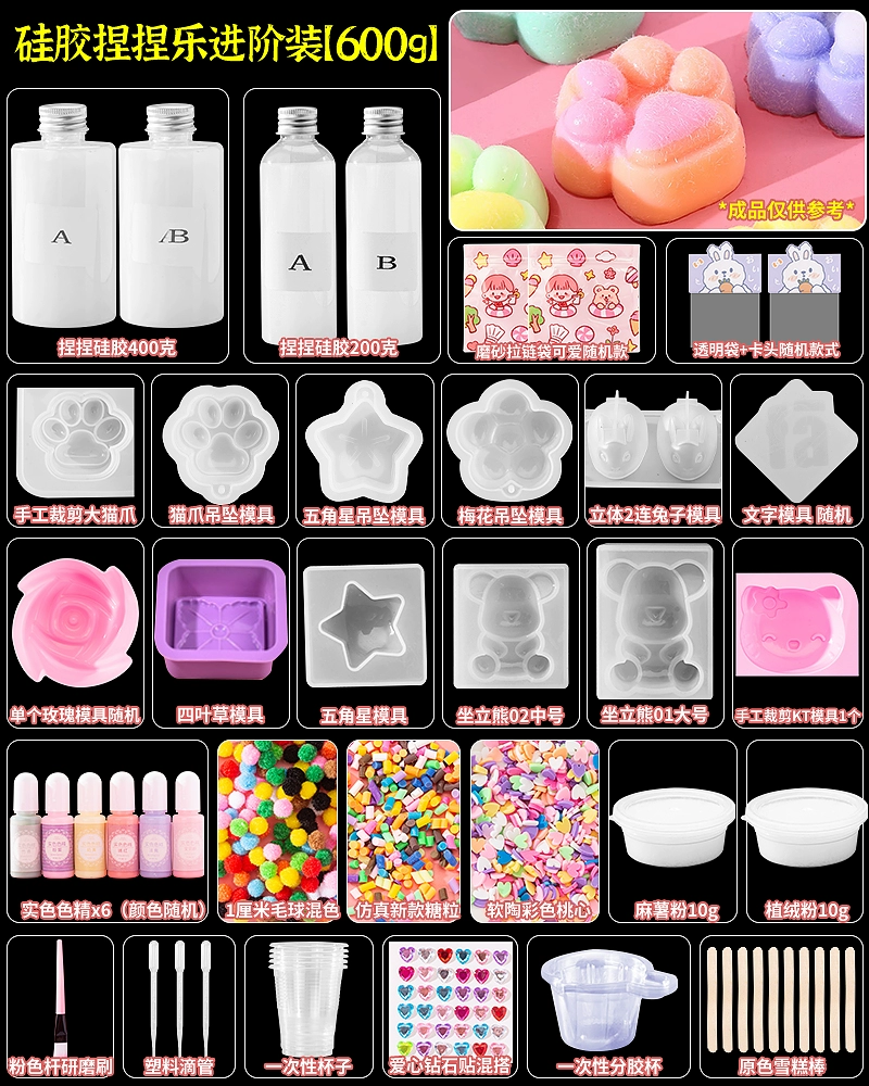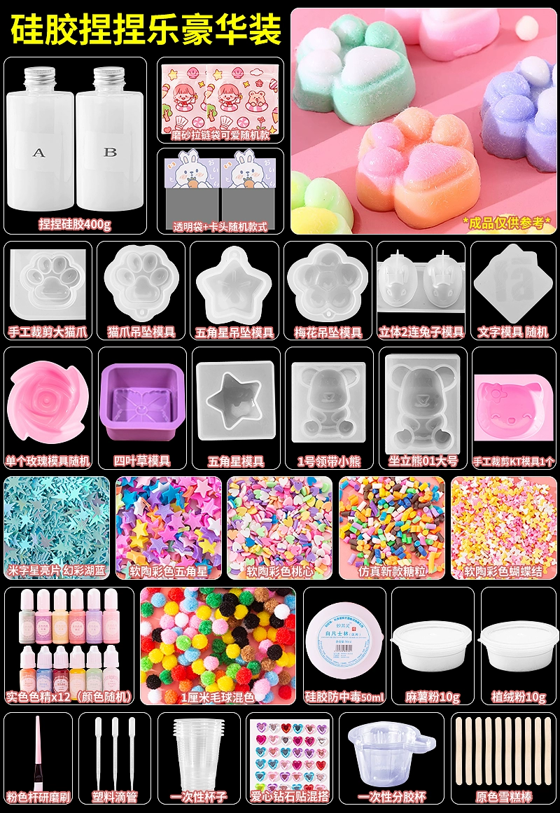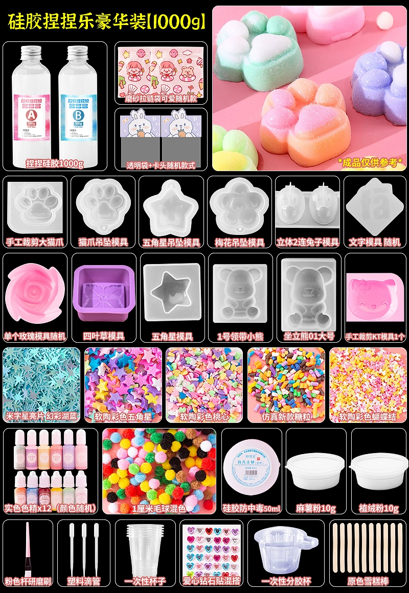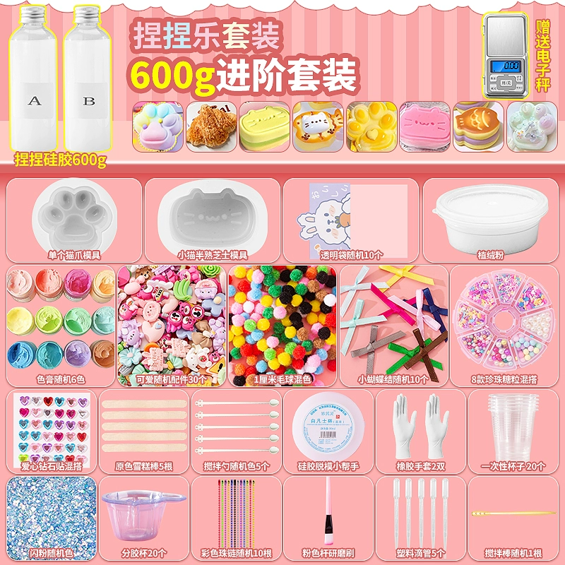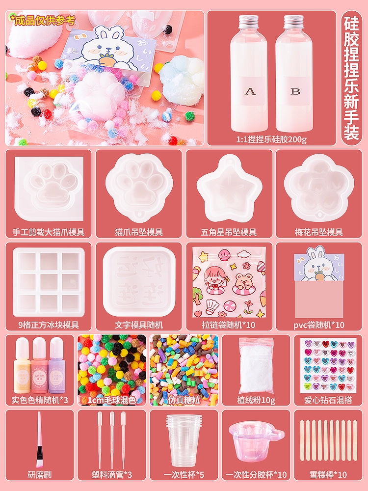 | nameOriginal | Homemade silicone pinch diy material package set for children handmade cat claw pinch decompression toy for girls |