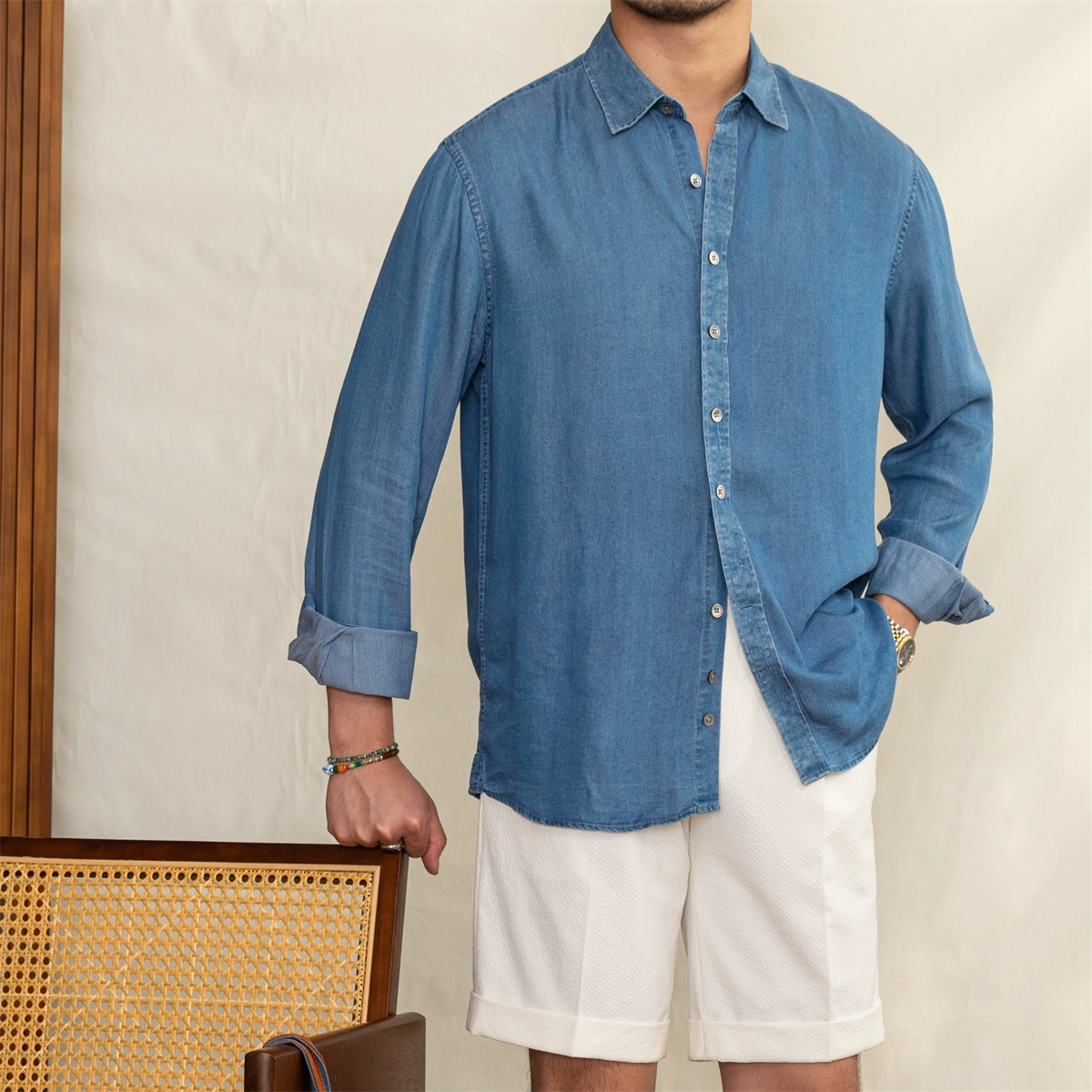 | nameOriginal | Homemade Tencel slightly wide casual denim color long-sleeved shirt |