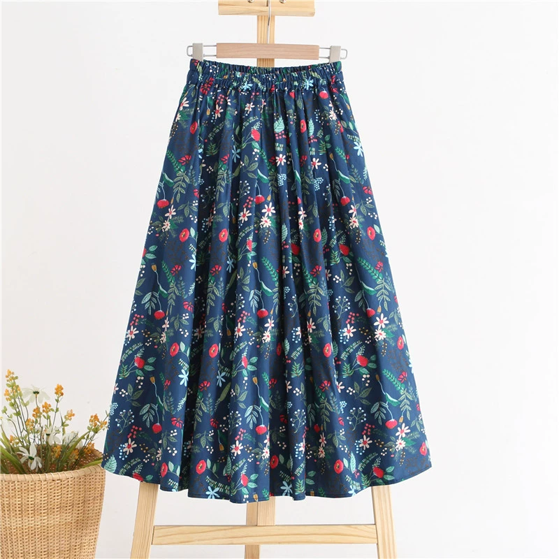 | nameOriginal | Homemade versatile navy blue floral cotton and linen skirt |