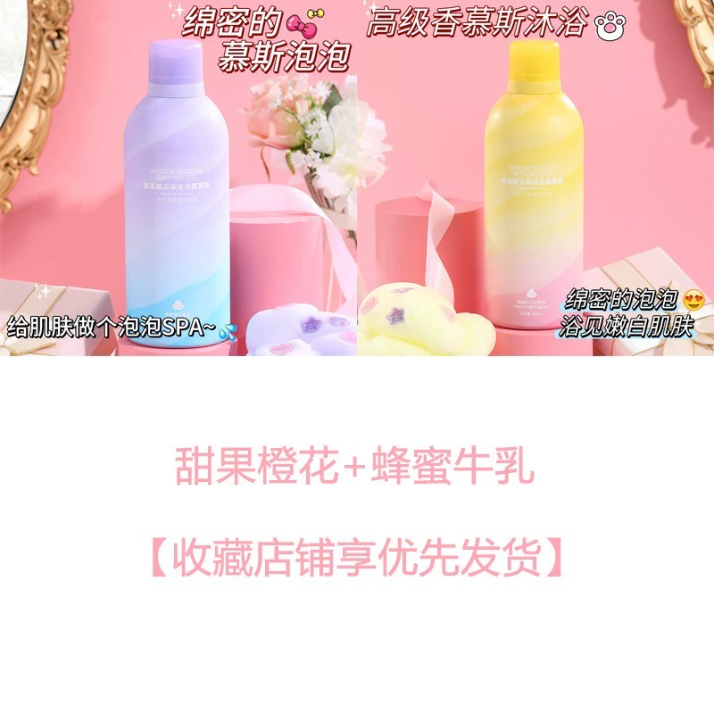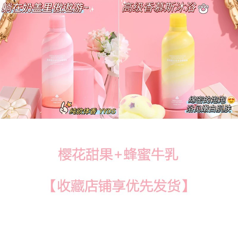 | nameOriginal | Honey milk flavored shower mousse to moisturize and cleanse |
