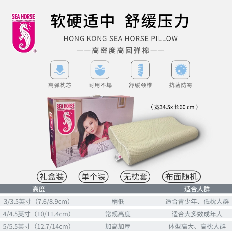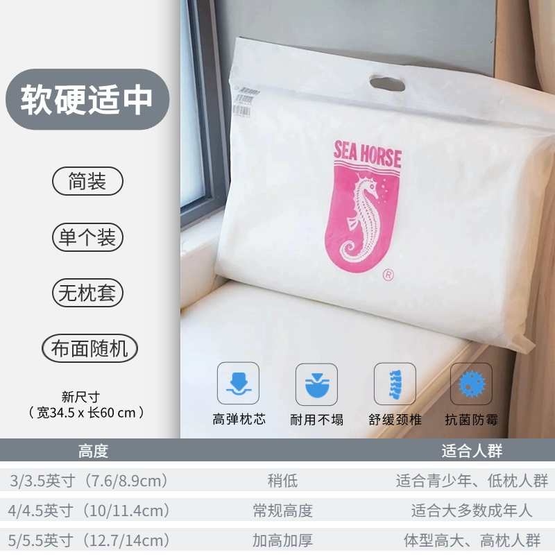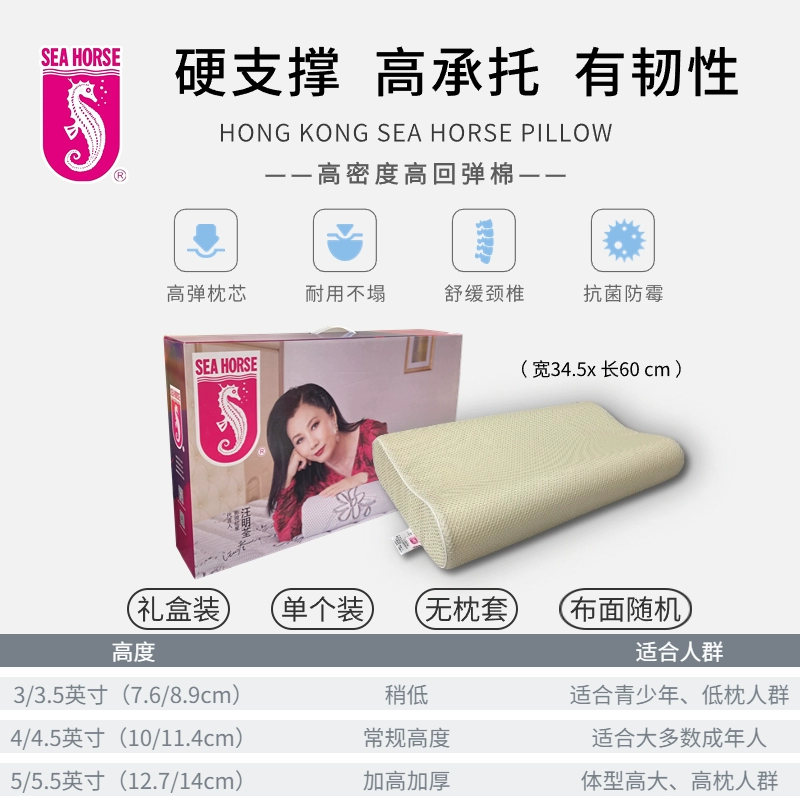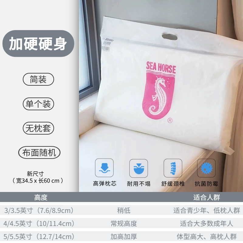 Hong Kong sea horse pillow hard pillow core single -player high -density sponge high back high thick -thick cervical hard cervical spine pillow